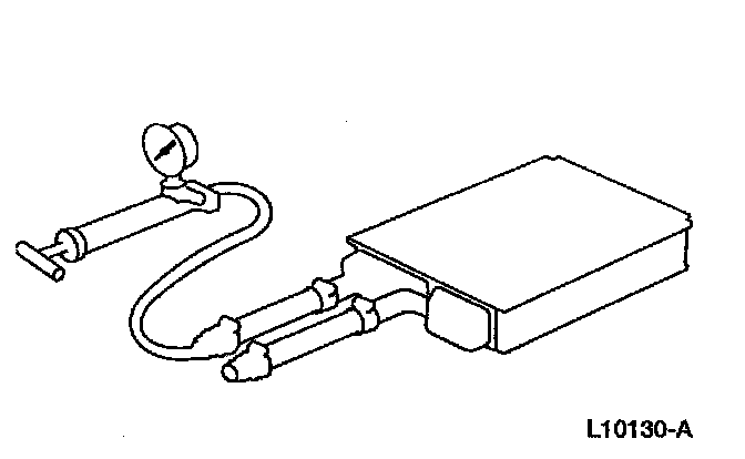8. If the pressure drops, check the heater water hose connections to the core tubes for leaks. If the heater water hoses do not leak, remove the heater core from the vehicle and perform the bench test