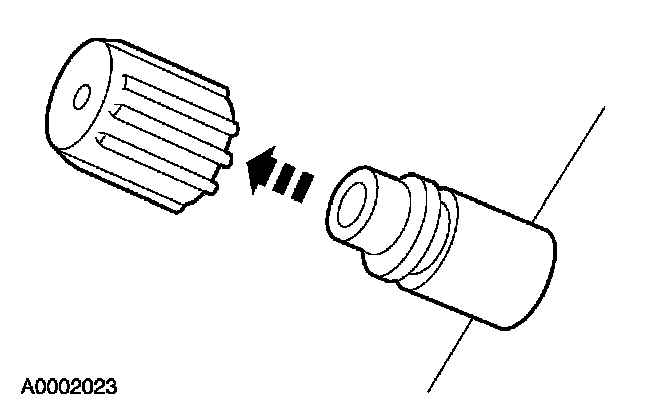 3. Remove the A/C charging valve cap from the high-pressure service gauge port valve.