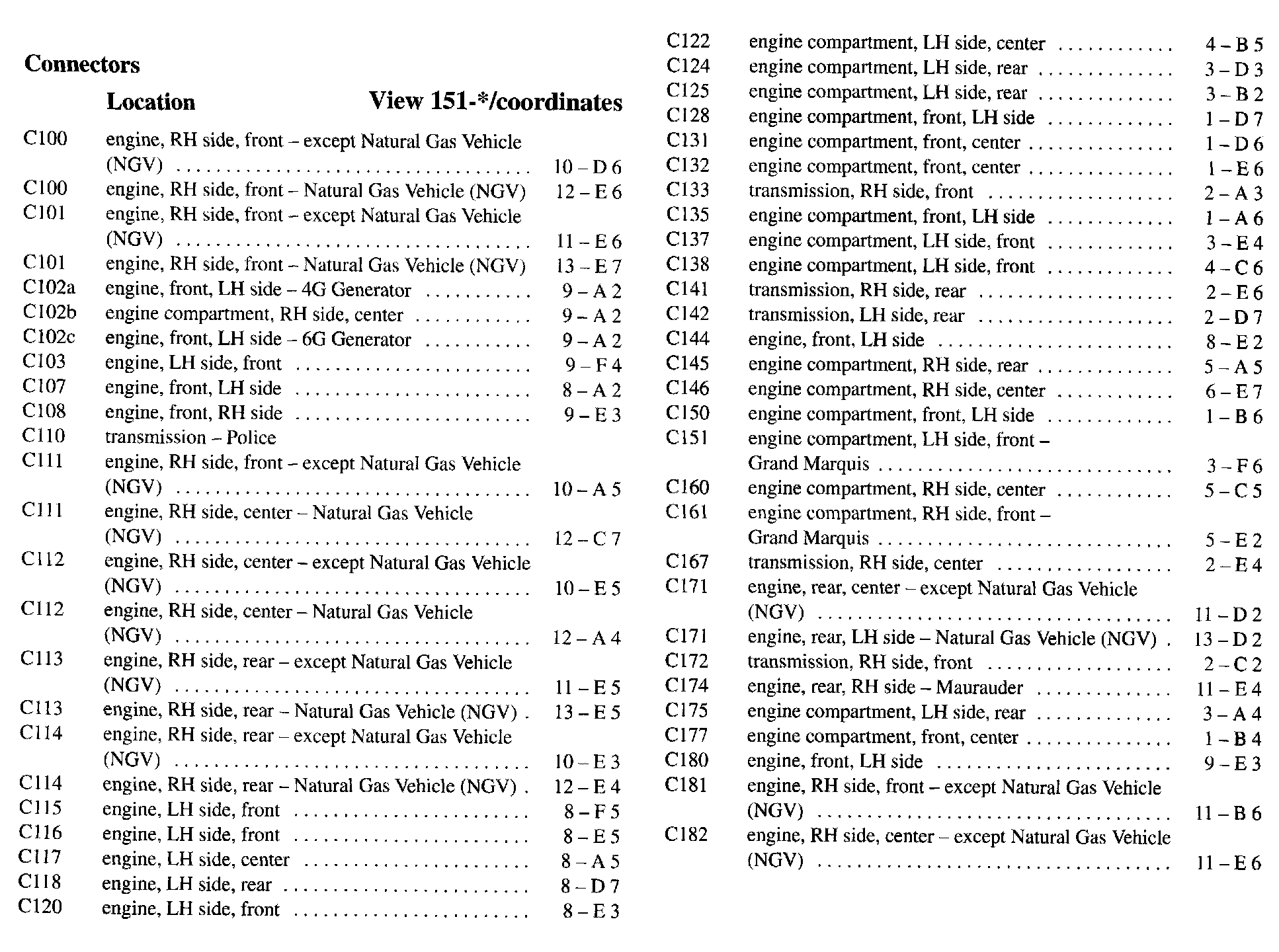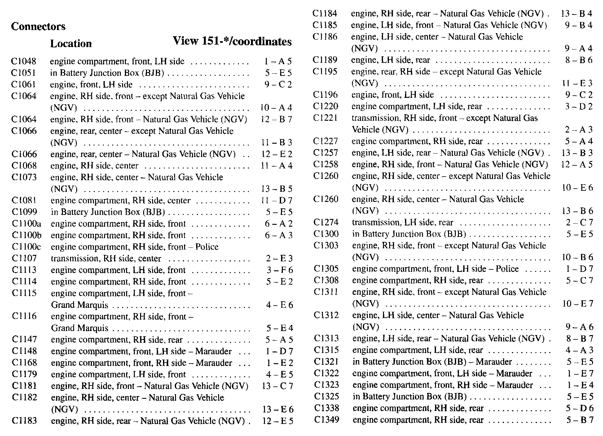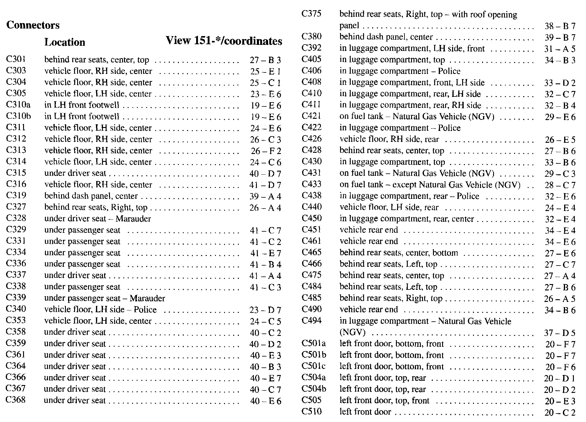 PLEASE NOTE: If a link on the Connector Location Index to a View is not provided, that means that the Connector and/or View in question does NOT apply to the vehicle model selected.