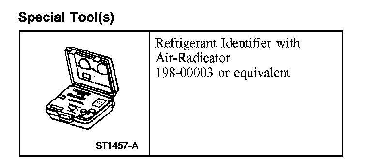 1. NOTE: An A/C refrigerant analyzer must be used to identify gas samples taken directly from the refrigeration system or storage containers prior to recovering or charging the refrigerant system.