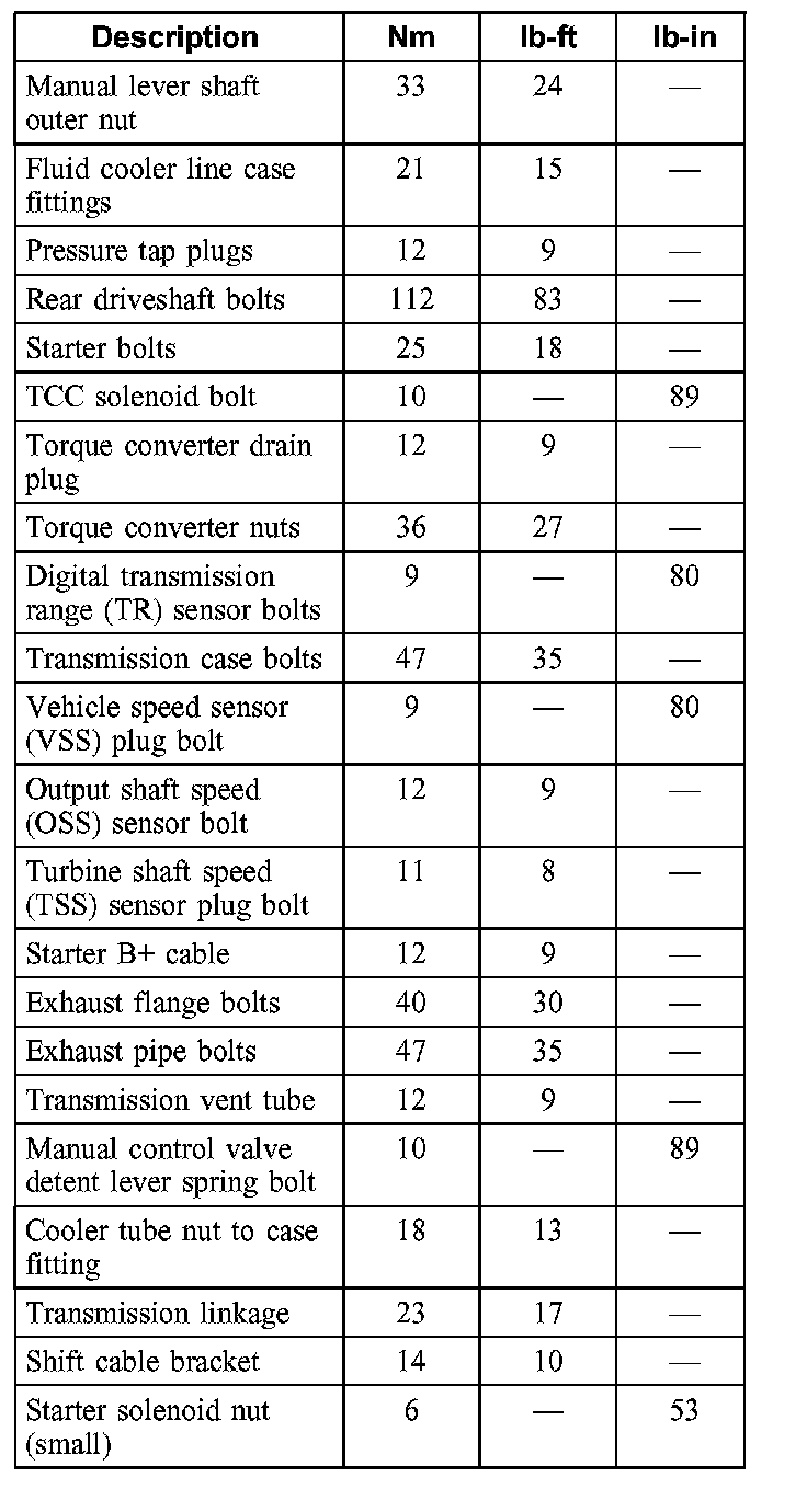 Torque Specifications