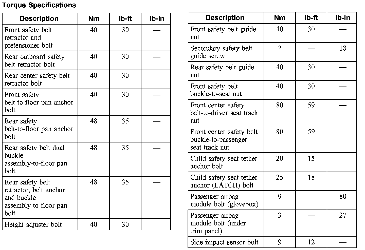 Torque Specifications: