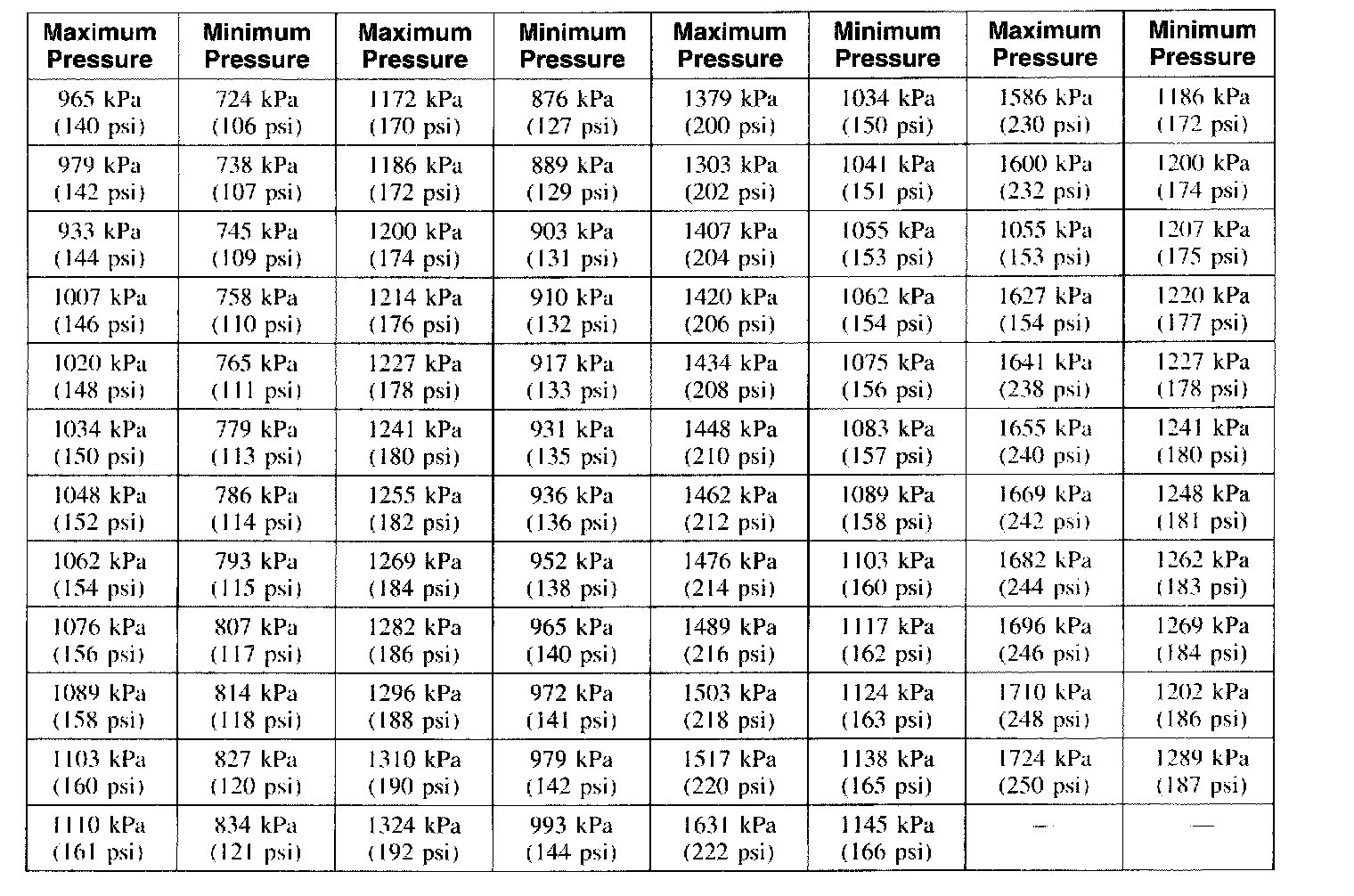 3. If two adjacent cylinders indicate low compression pressures and squirting oil on each piston does not increase compression, the head gasket may be leaking between cylinders. Engine oil or coolant in cylinders could result from this condition. Use the Compression Pressure Limit Chart when checking cylinder compression so that the lowest reading is within 75 percent of the highest reading.