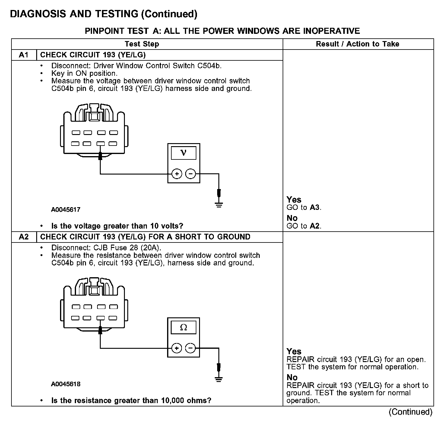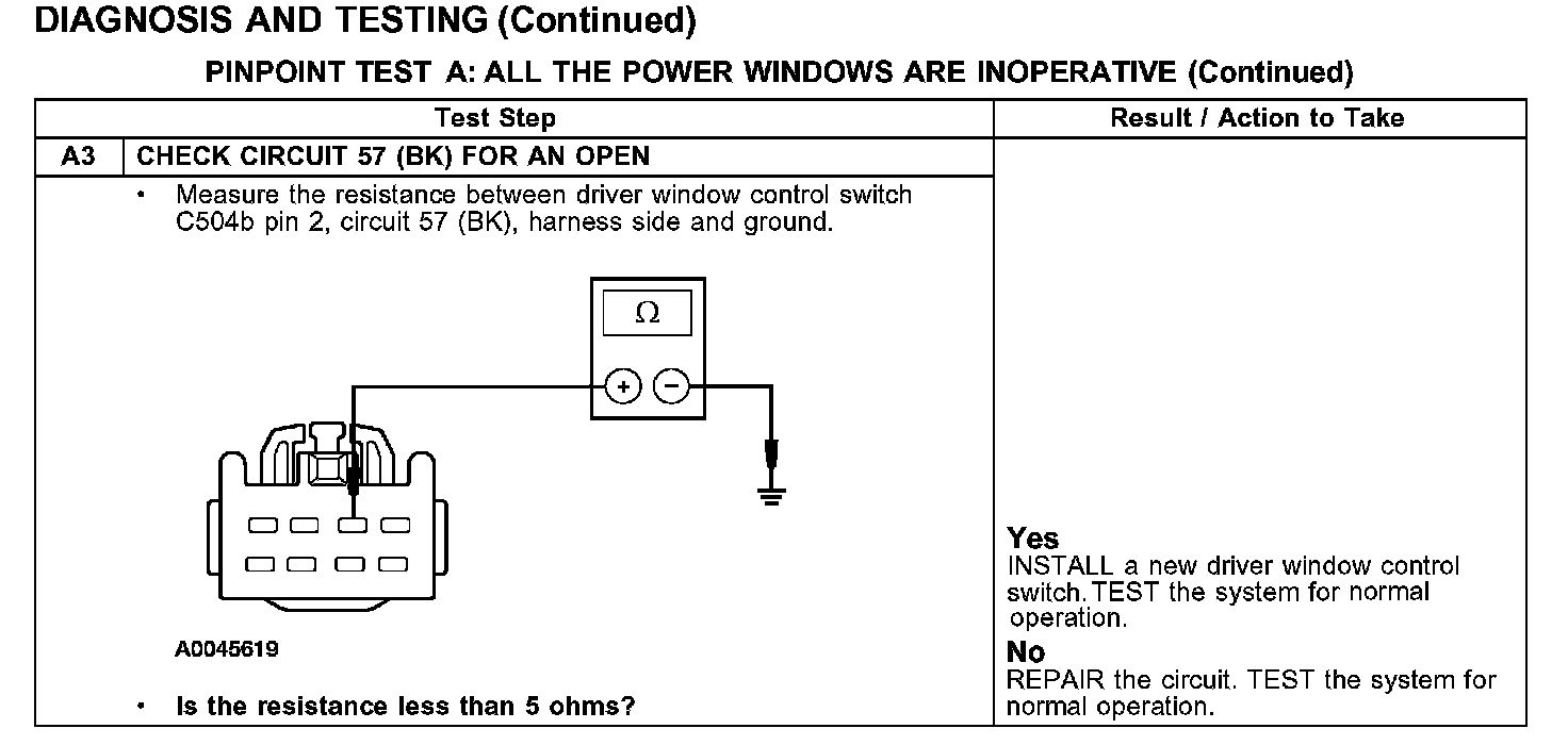 PINPOINT TEST A: ALL THE POWER WINDOWS ARE INOPERATIVE