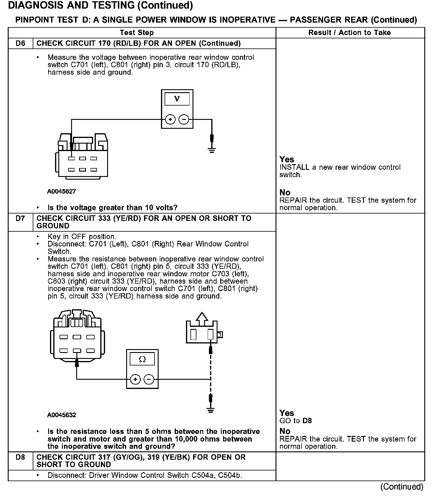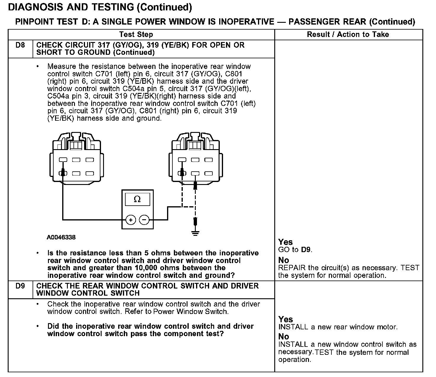 PINPOINT TEST D: A SINGLE POWER WINDOW IS INOPERATIVE - PASSENGER REAR