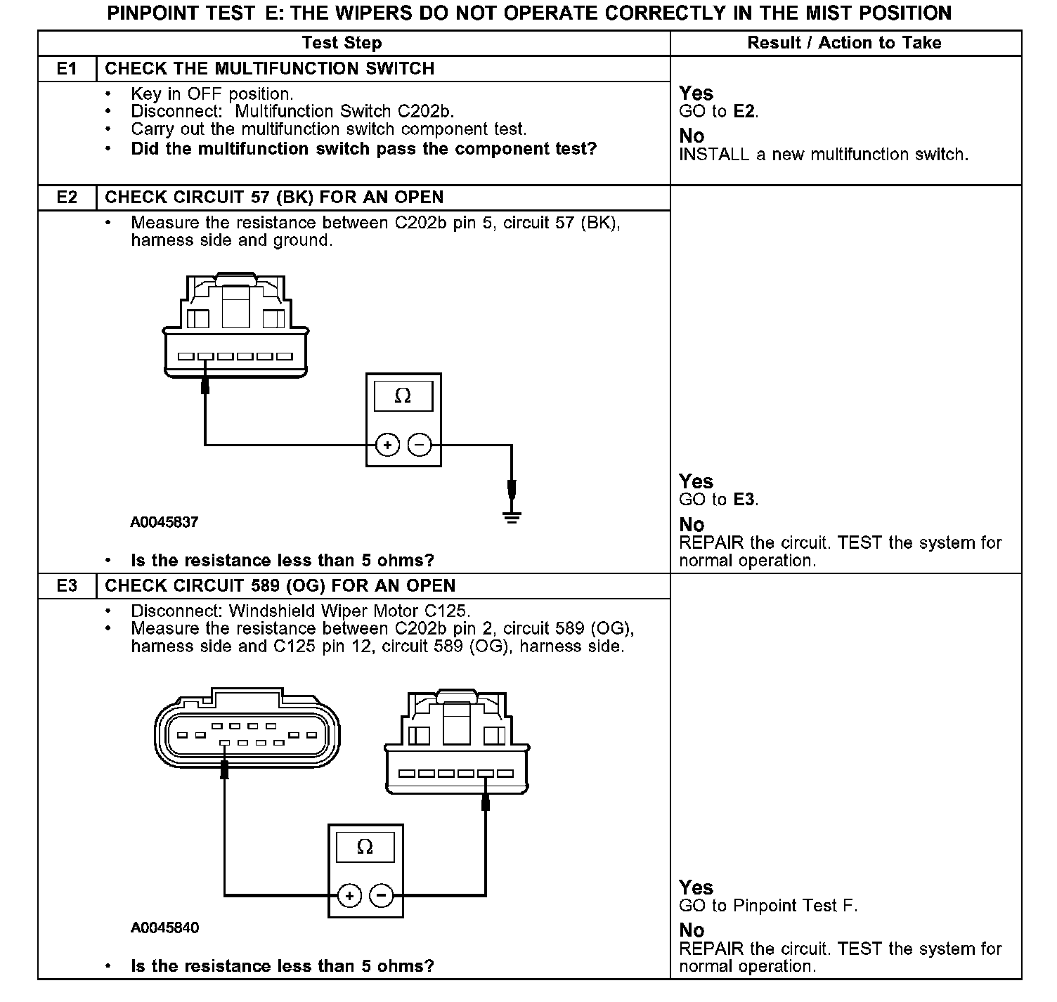 PINPOINT TEST E: THE WIPERS DO NOT OPERATE CORRECTLY IN THE MIST POSITION