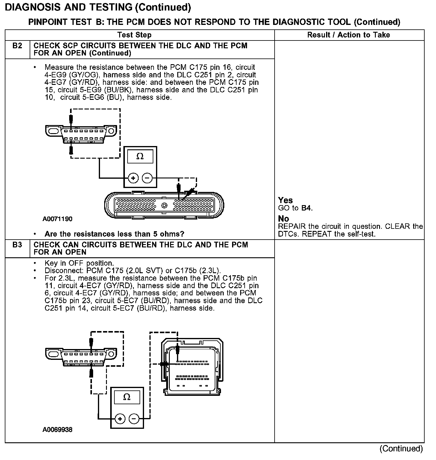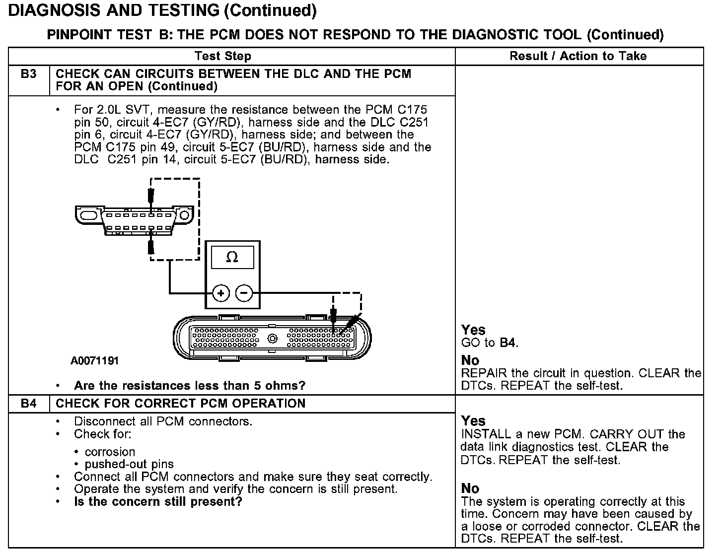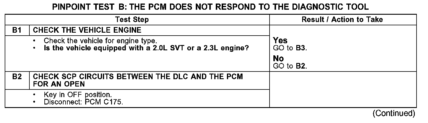 PINPOINT TEST B: THE PCM DOES NOT RESPOND TO THE DIAGNOSTIC TOOL