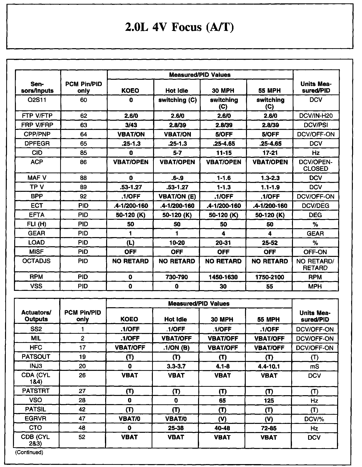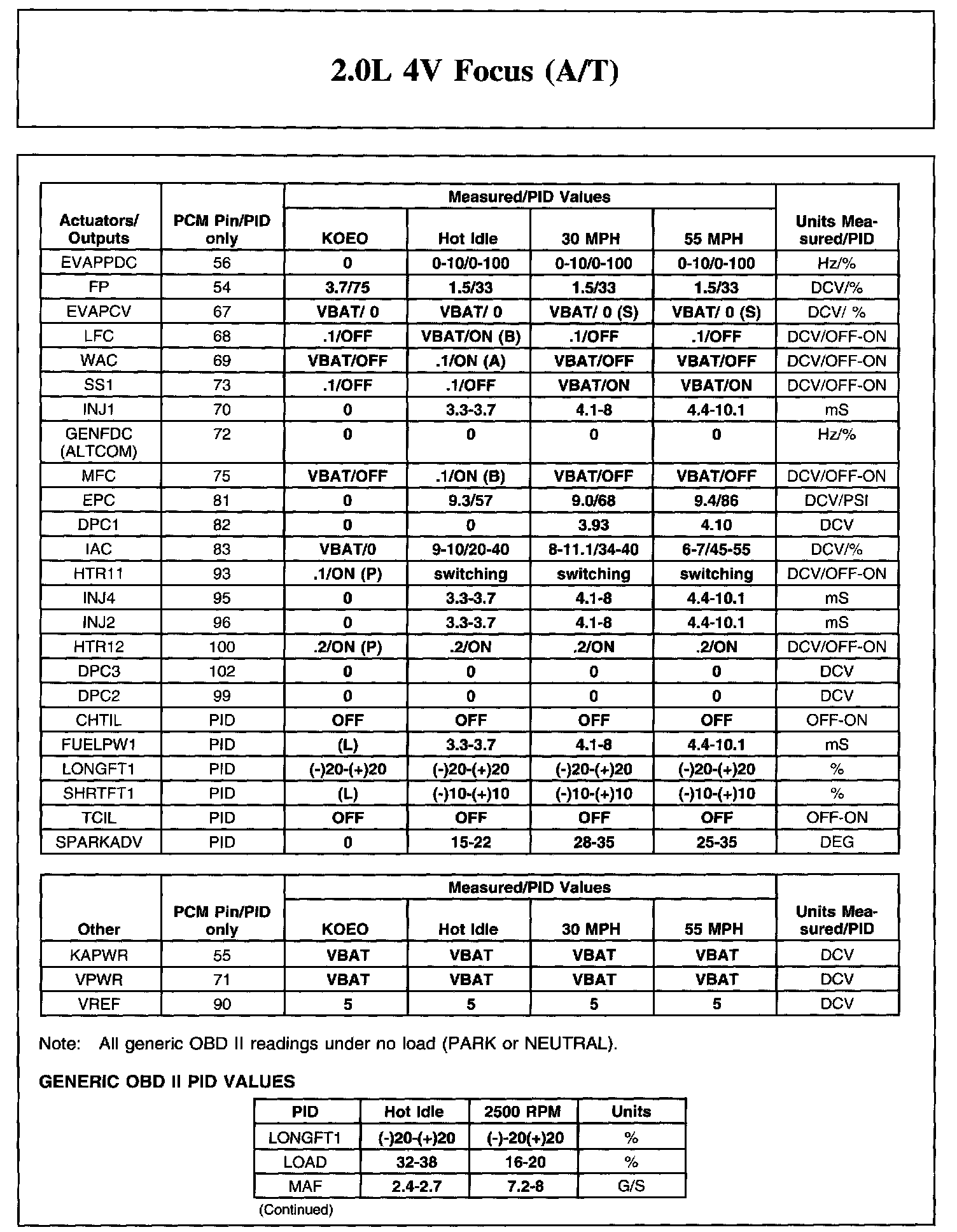 The Typical Diagnostic Reference Value Charts do not display fault PIDs. These are PIDs which indicate a hard fault with the circuit. They display a value of "YES" or "NO" and are PIDs ending with an "F".