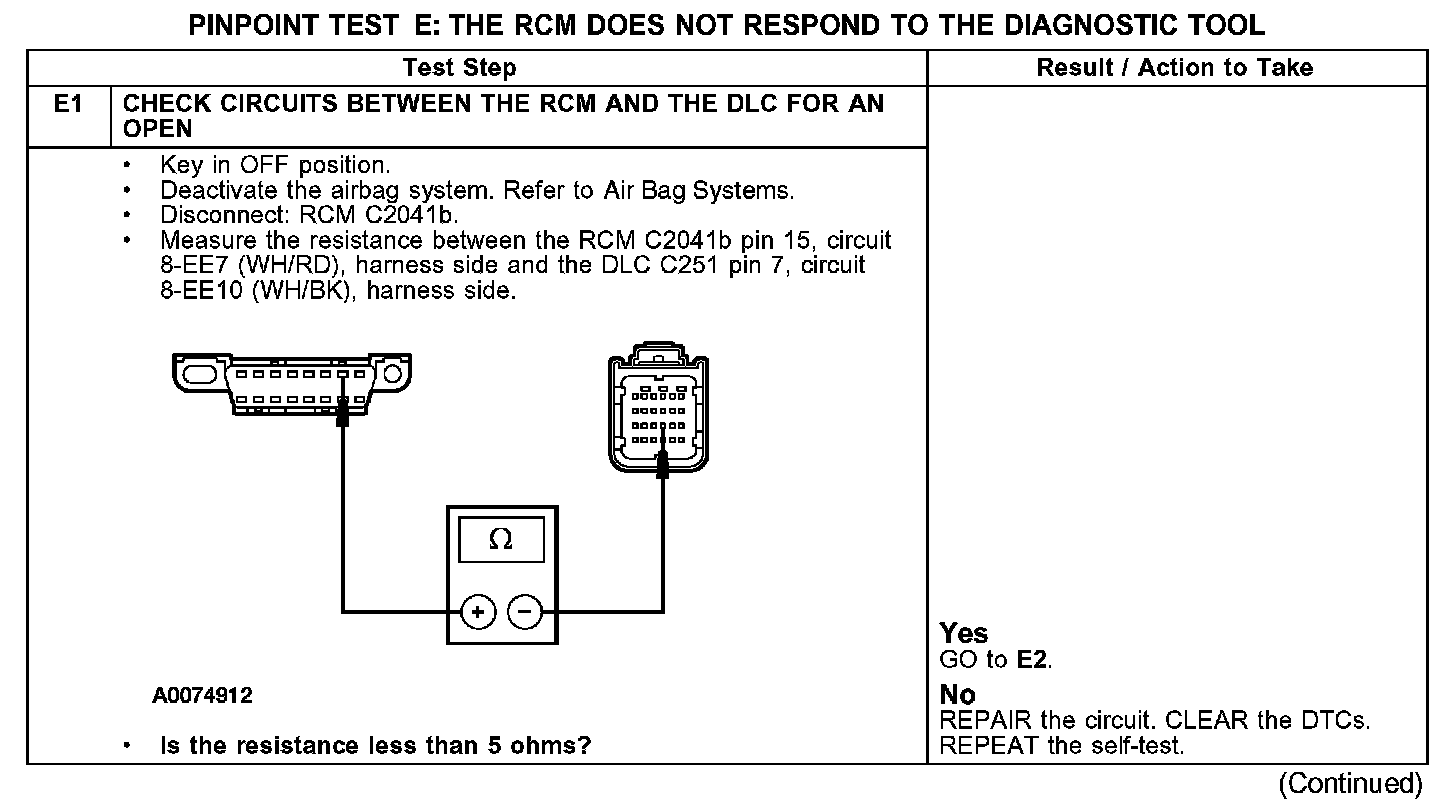 PINPOINT TEST E: THE RCM DOES NOT RESPOND TO THE DIAGNOSTIC TOOL