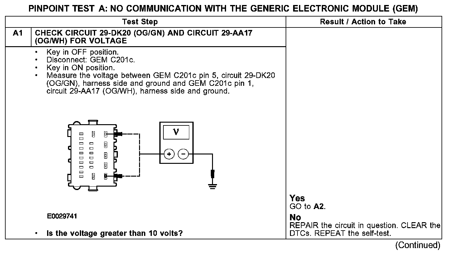 PINPOINT TEST A: NO COMMUNICATION WITH THE GENERIC ELECTRONIC MODULE (GEM)
