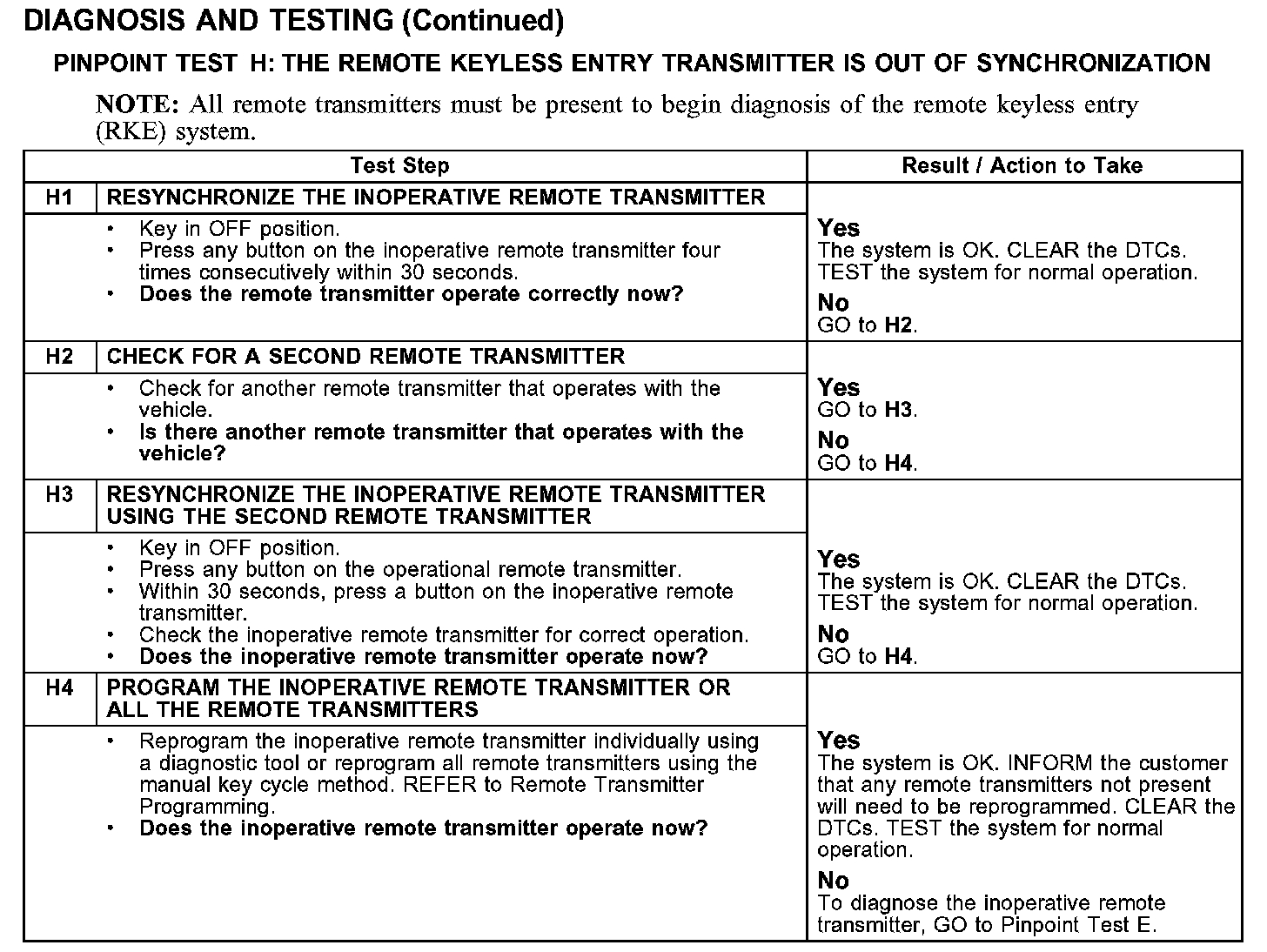 PINPOINT TEST H: THE REMOTE KEYLESS ENTRY TRANSMITTER IS OUT OF SYNCHRONIZATION