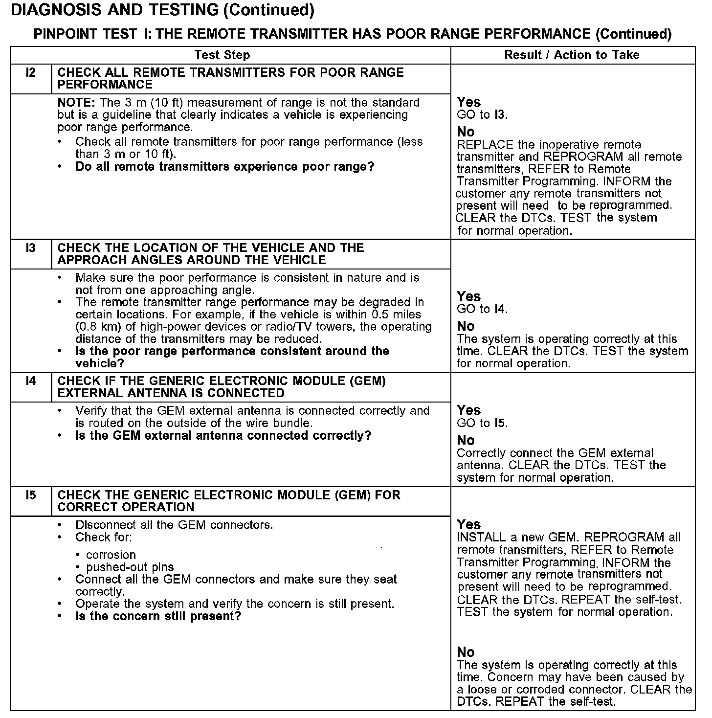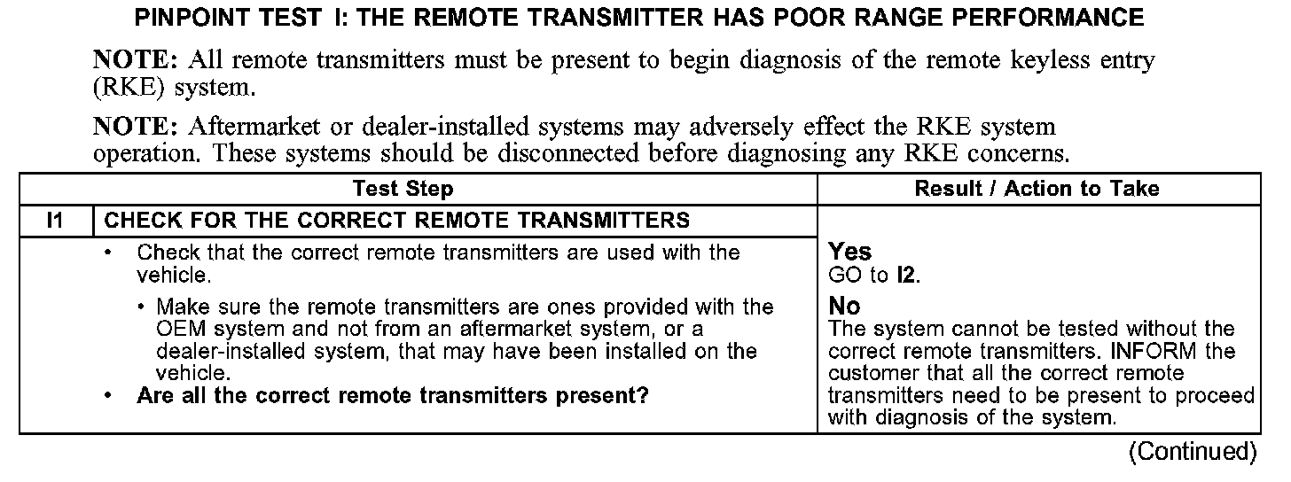 PINPOINT TEST I: THE REMOTE TRANSMITTER HAS POOR RANGE PERFORMANCE