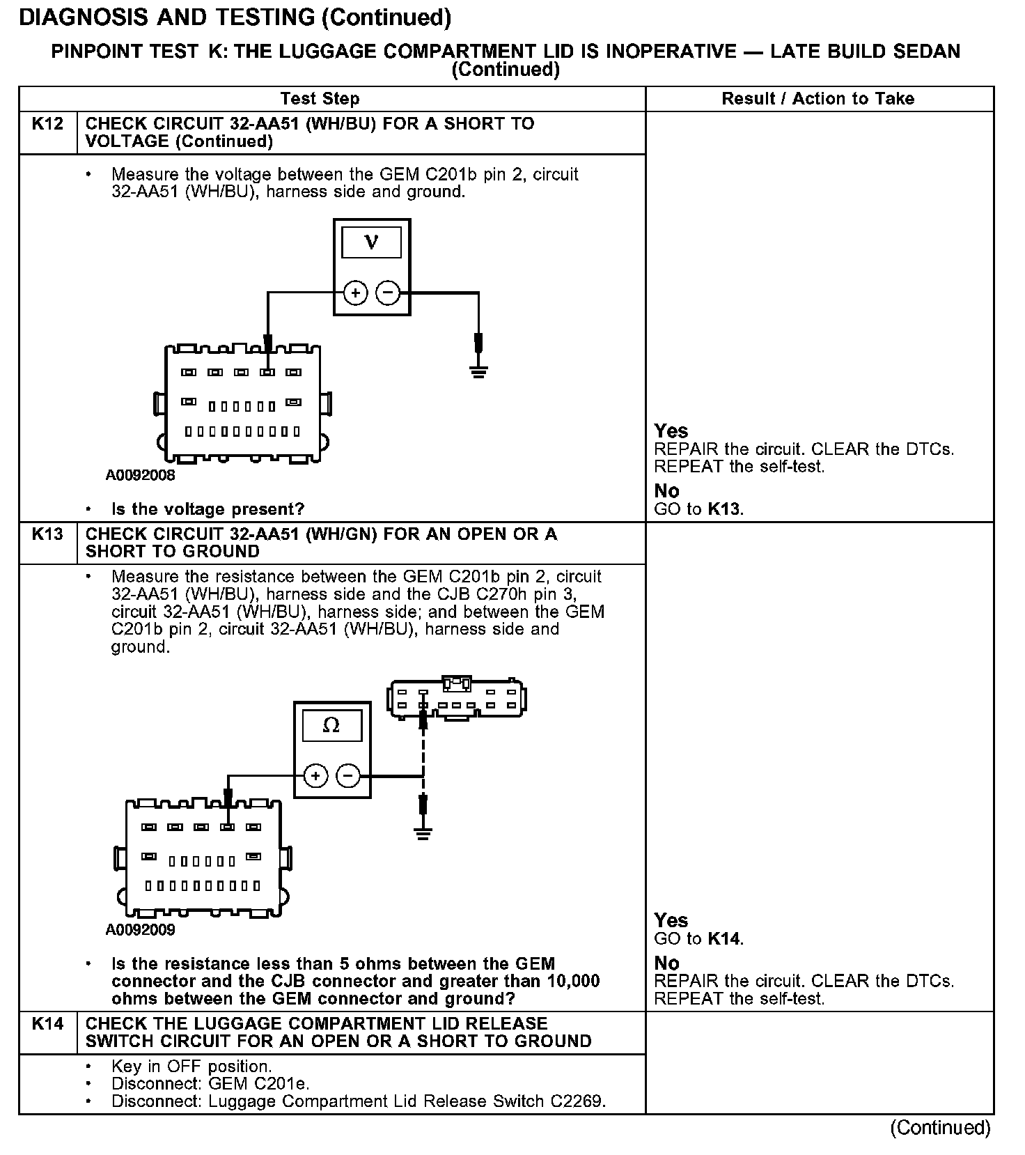 PINPOINT TEST K: THE LUGGAGE COMPARTMENT LID IS INOPERATIVE - LATE BUILD SEDAN