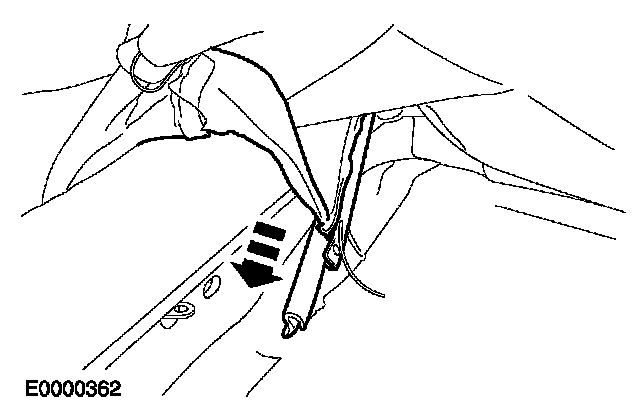 - Assemble the plastic rivet into the plastic retaining strip attaching the side air bag module deployment sleeve.