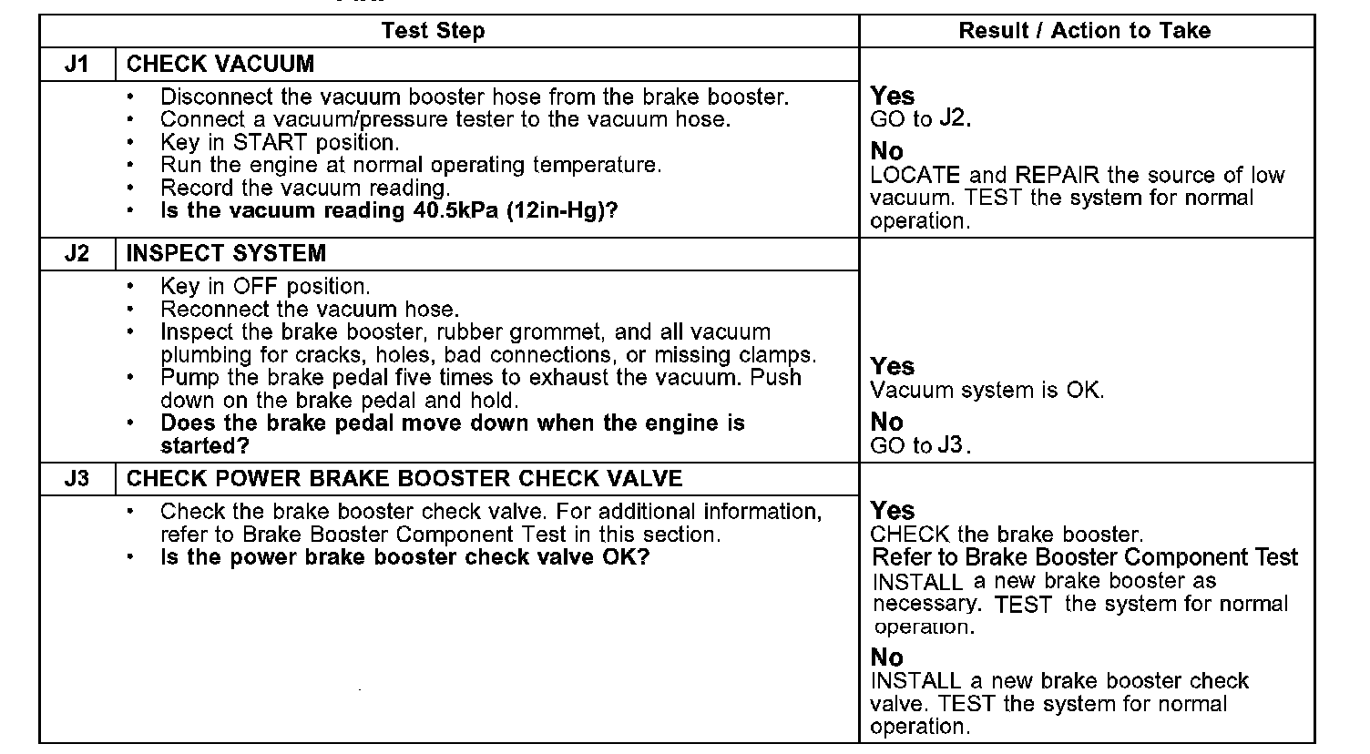 PINPOINT TEST J: EXCESSIVE BRAKE PEDAL EFFORT