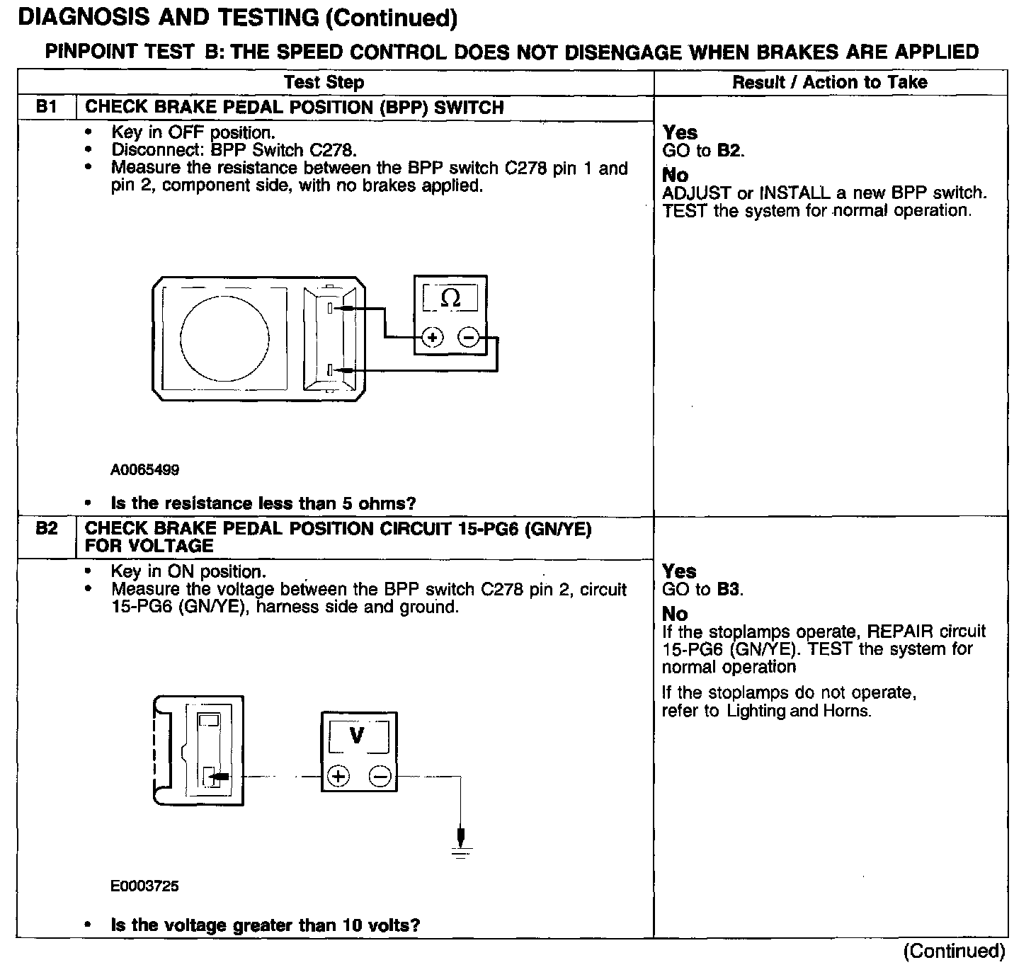 PINPOINT TEST B: THE SPEED CONTROL DOES NOT DISENGAGE WHEN BRAKES ARE APPLIED