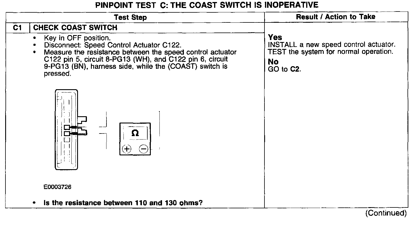 PINPOINT TEST C: THE COAST SWITCH IS INOPERATIVE