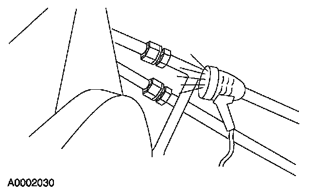 Disconnect the high-pressure and low-pressure service valves and remove the deluxe injector loop kit from the vehicle.