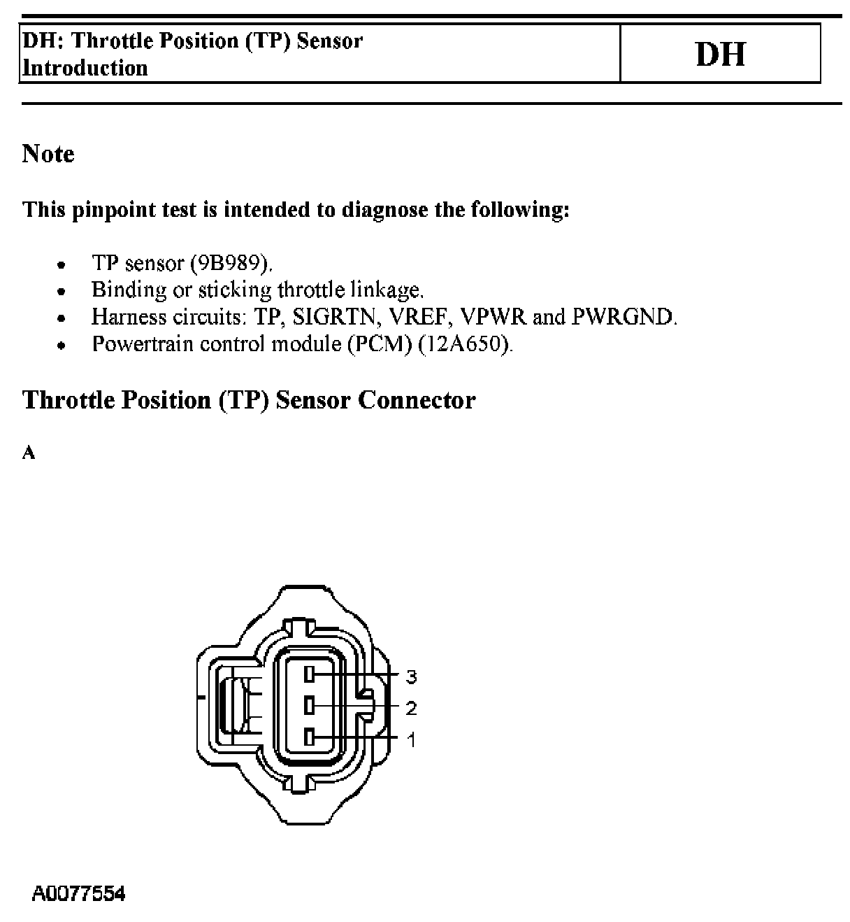 PINPOINT TEST DH: THROTTLE POSITION (TP) SENSORDH Introduction 1 Of 3: