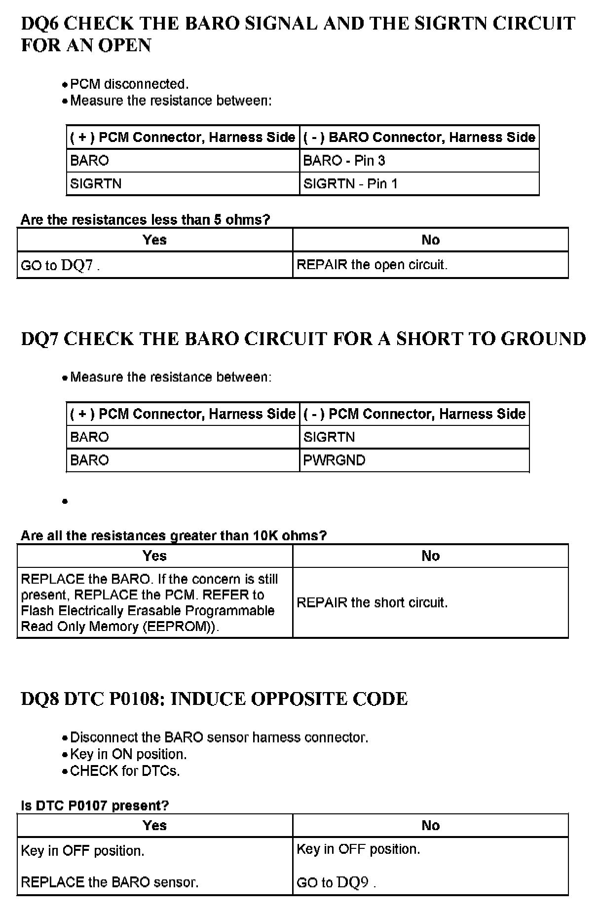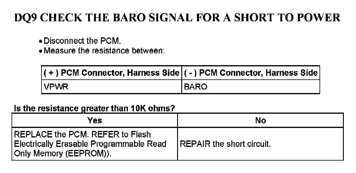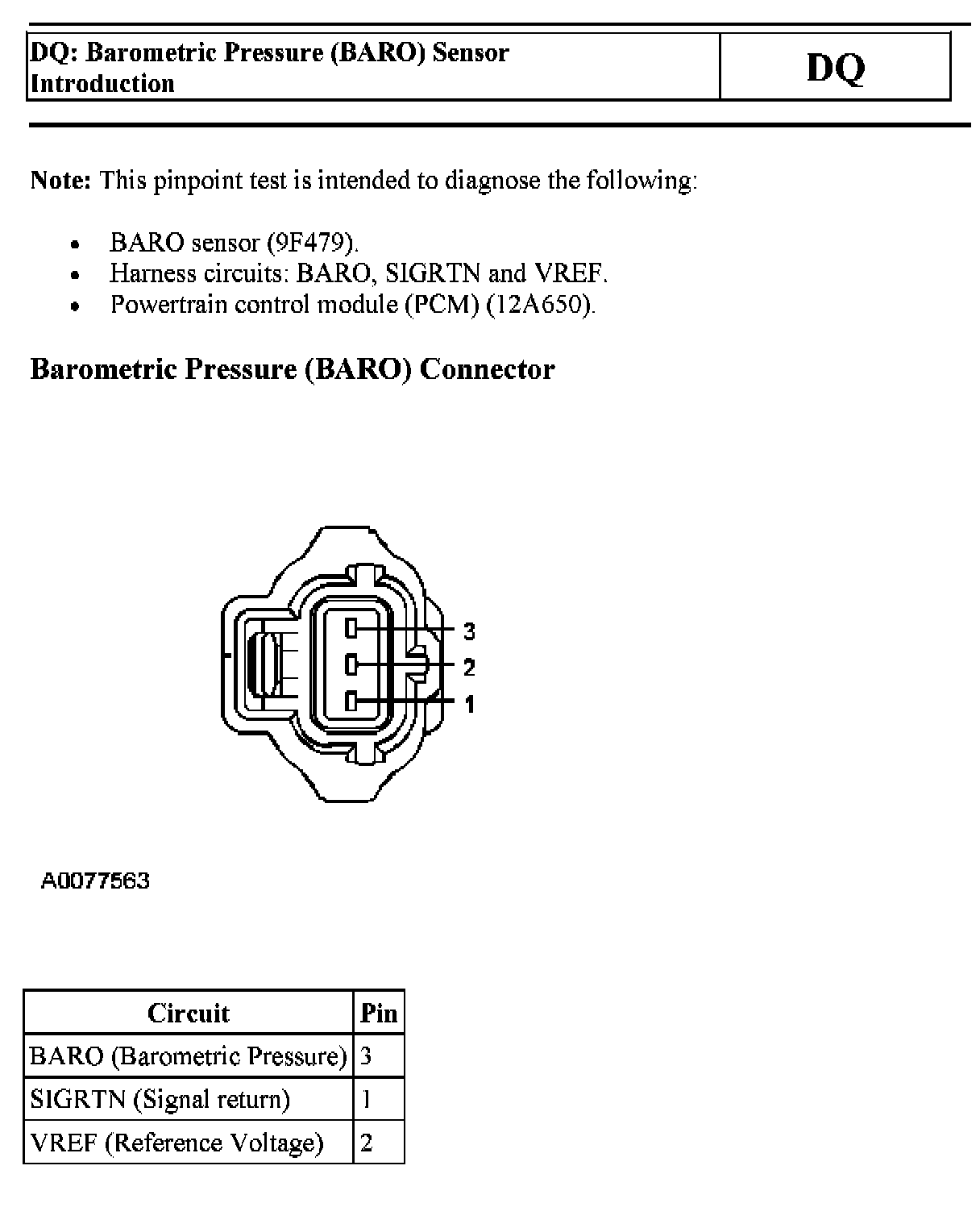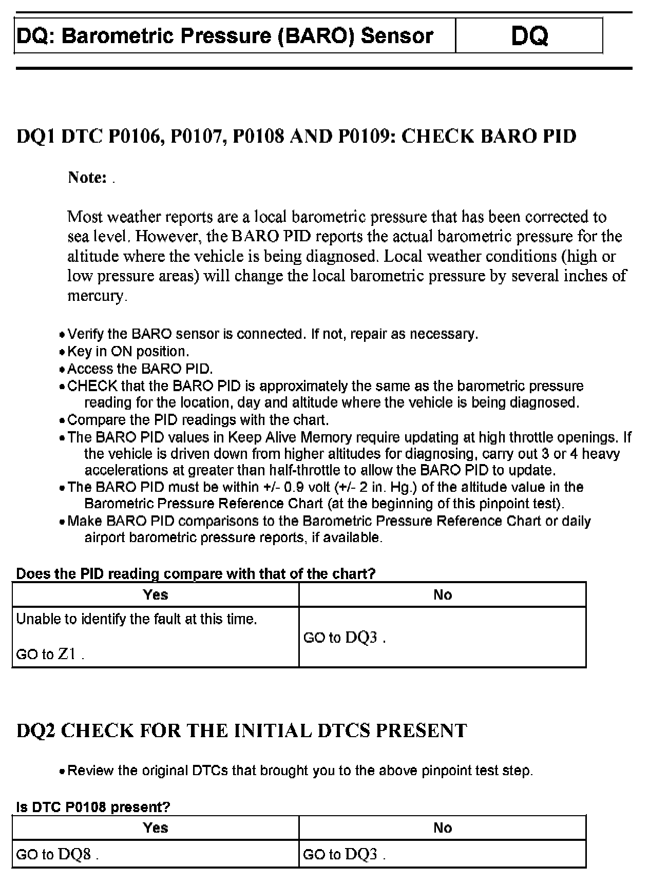 PINPOINT TEST DQ: BAROMETRIC PRESSURE (BARO) SENSOR