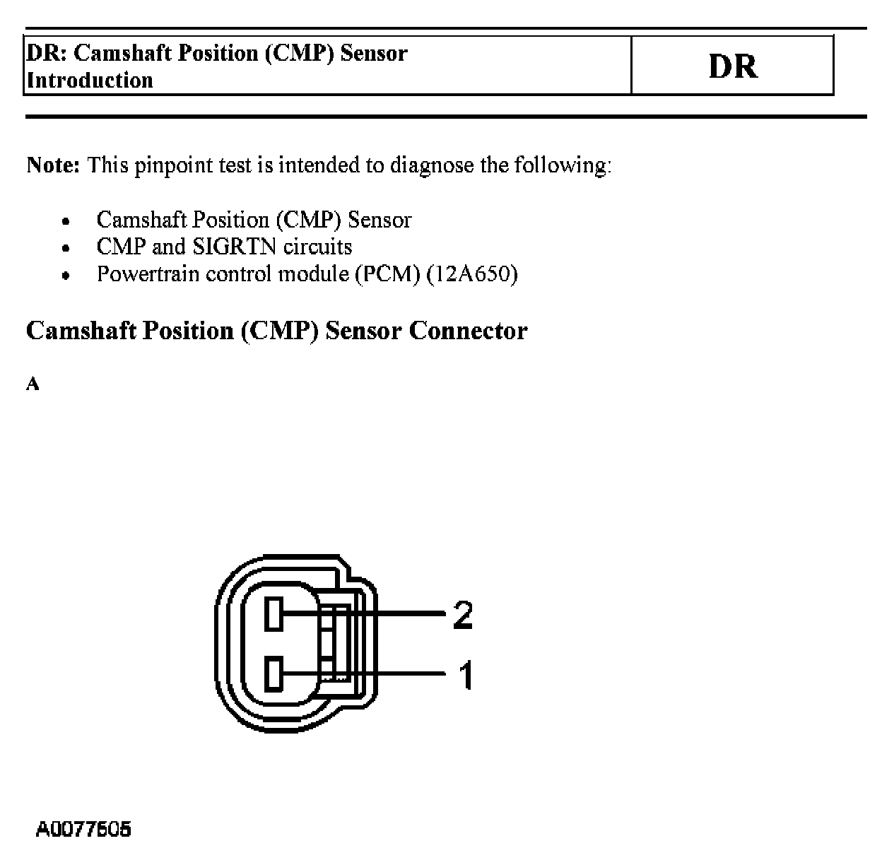 PINPOINT TEST DR: CAMSHAFT POSITION (CMP) SENSORDR Introduction 1 Of 6: