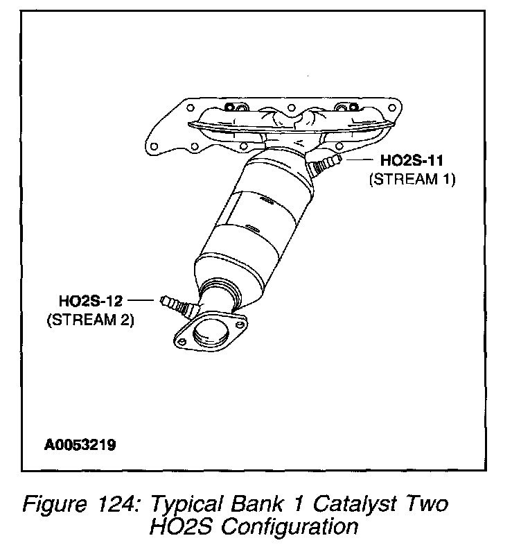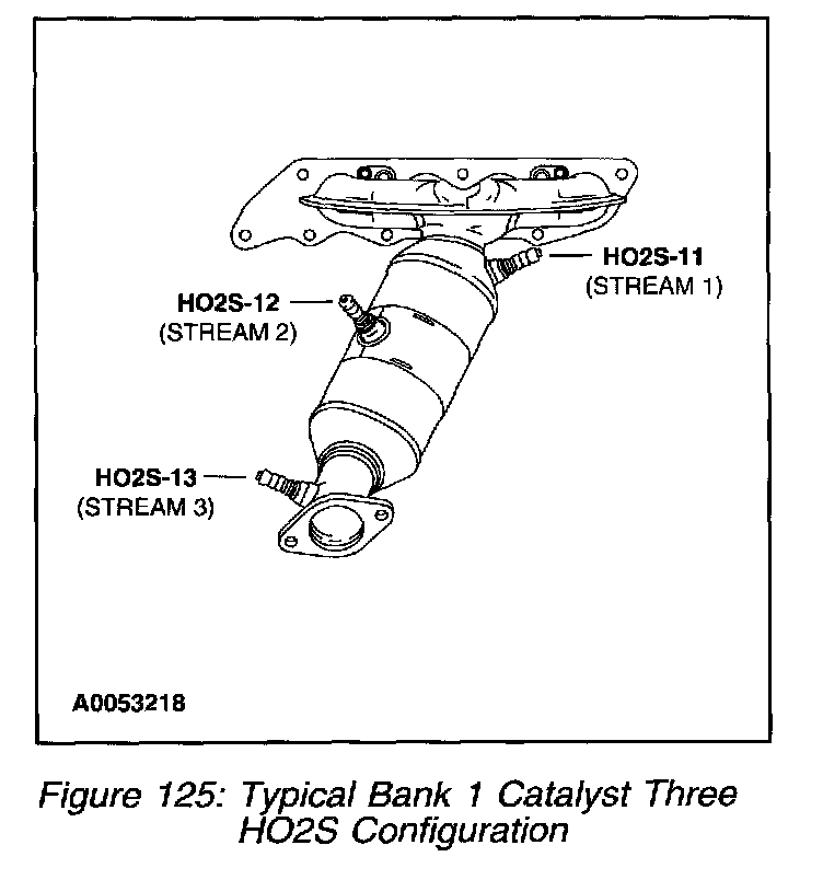 Note on some Partial Zero Emission Vehicles (PZEV), there will be a total of 3 HO2S in the exhaust stream. One near the exhaust manifold (stream 1), one in the middle of the light-off catalyst (stream 2) and the third (stream 3) is mounted after the light-off catalyst (Figure 125).