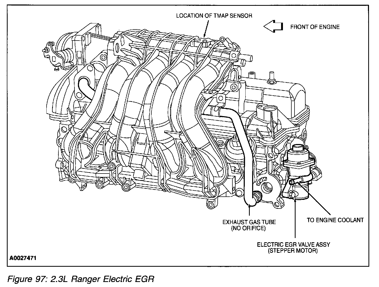 1. The EEGR system receives signals from the engine coolant temperature (ECT) or cylinder head temperature (CHT) sensor, throttle position (TP) sensor, mass air flow (MAF) sensor, crankshaft position (CKP) sensor and the manifold absolute pressure (MAP) sensor to provide information on engine operating conditions to the PCM. The engine must be warm, stable and running at a moderate load and rpm before the EEGR system is activated. The PCM will deactivate EEGR during idle, extended wide open throttle or whenever a failure is detected in an EEGR component or EGR required input.