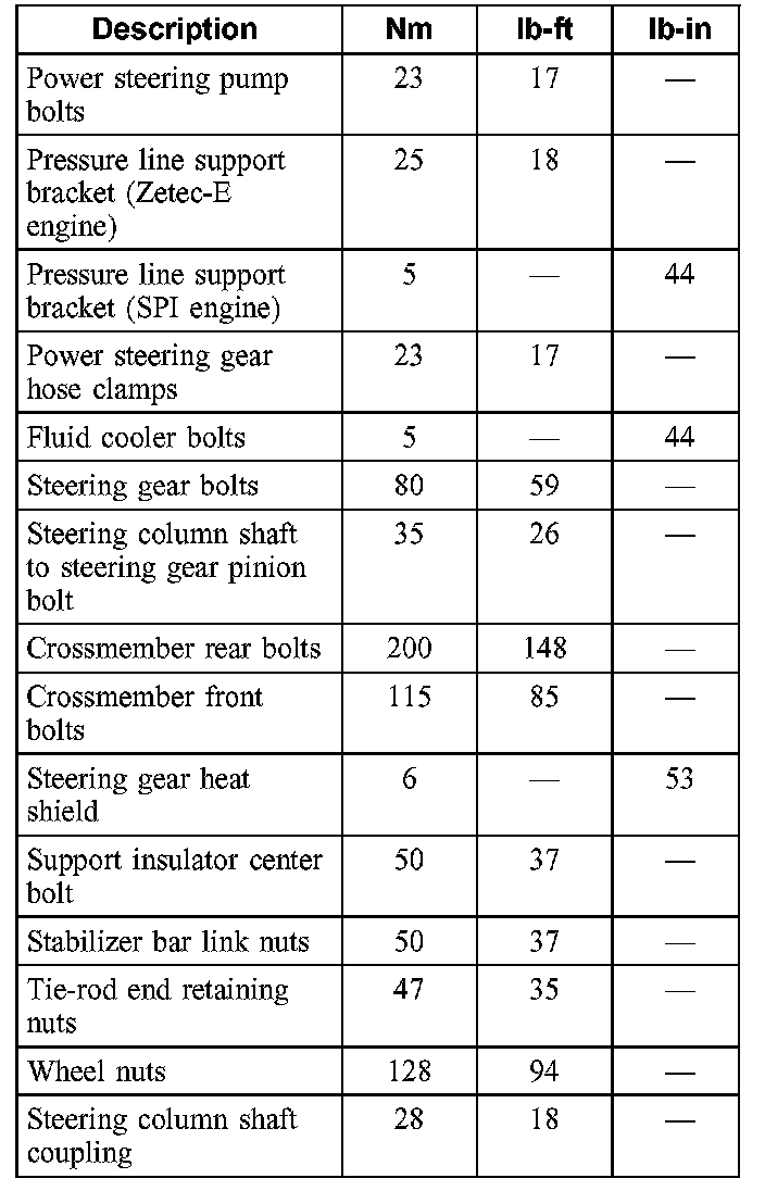 Torque Specifications