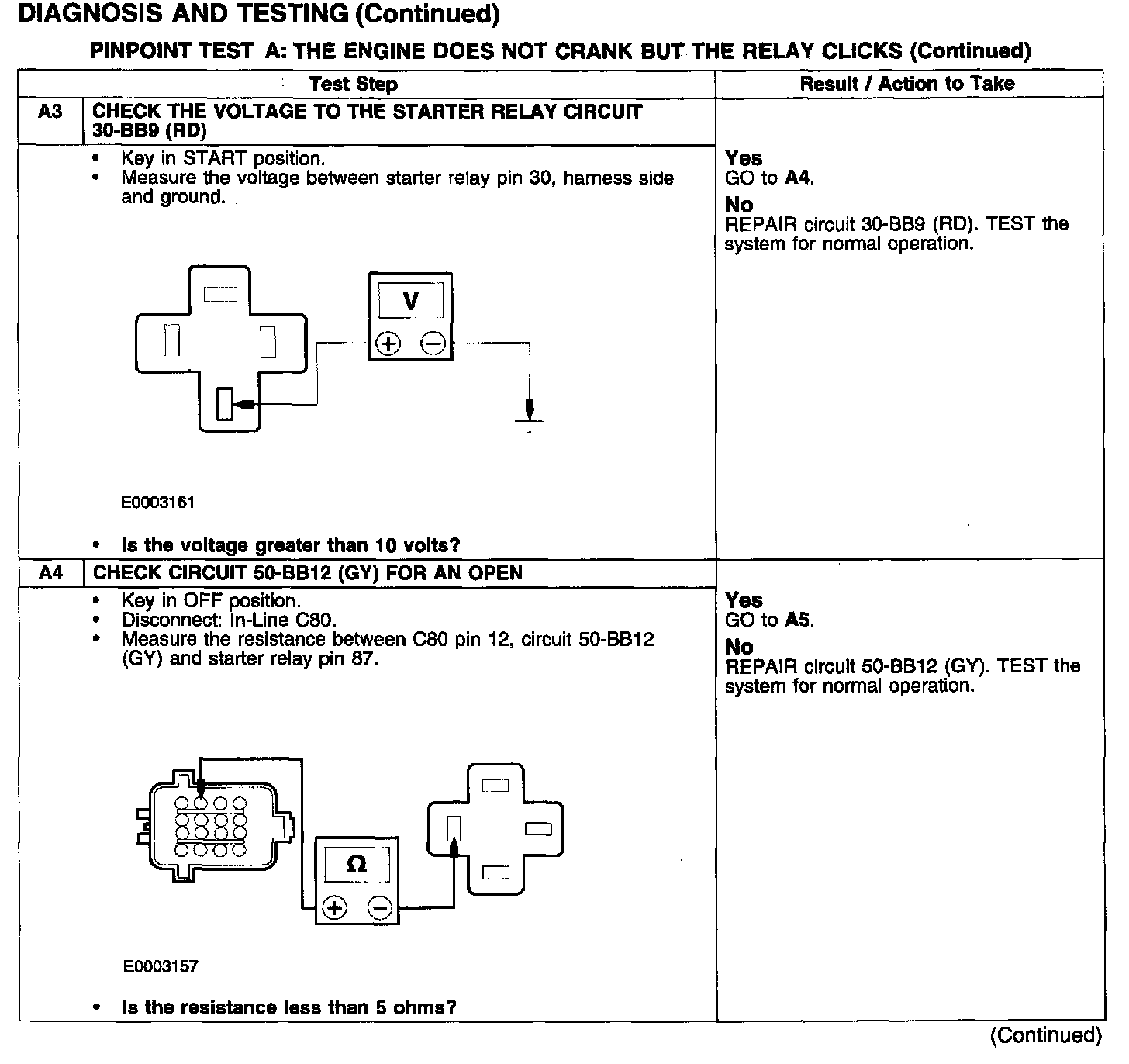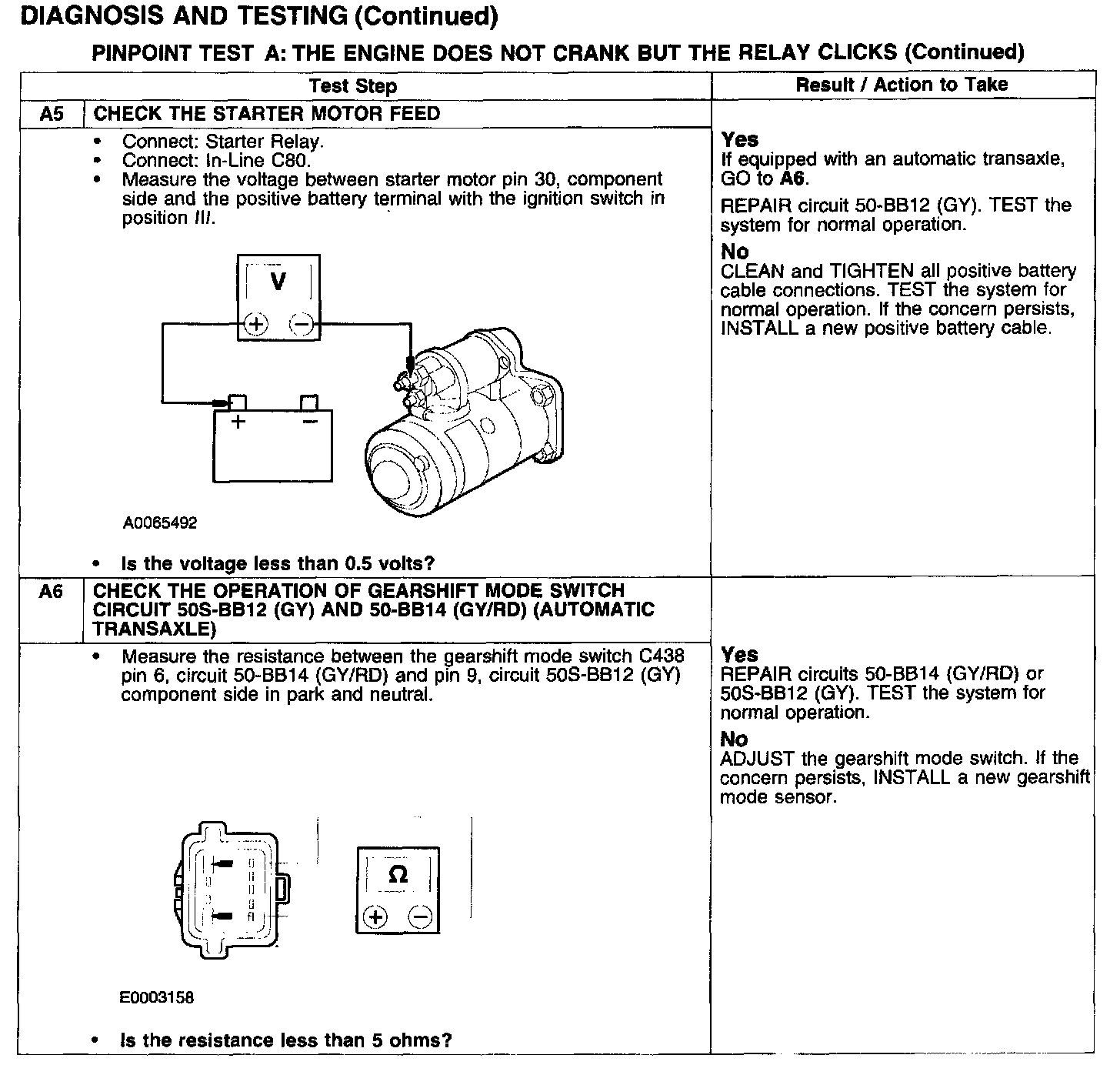 PINPOINT TEST A: THE ENGINE DOES NOT CRANK BUT THE RELAY CLICKS