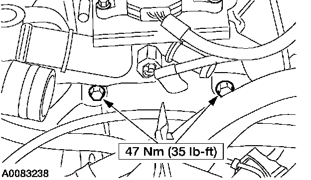 7. Install the three RH converter housing bolts.