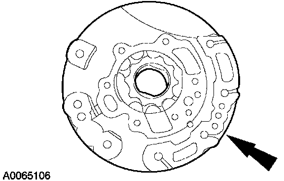 NOTE: The larger recess, with the beveled edge, must face toward the torque converter.