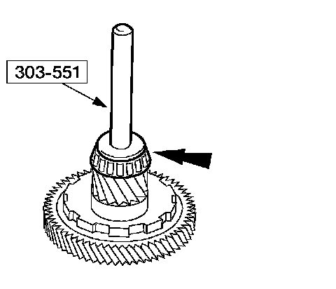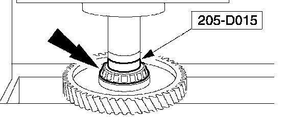2. Using the special tool and a press, remove the left-hand side transfer shaft gear bearing while separating the gears.