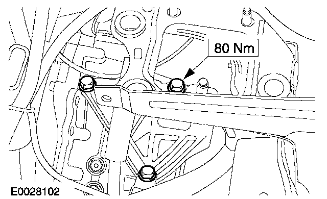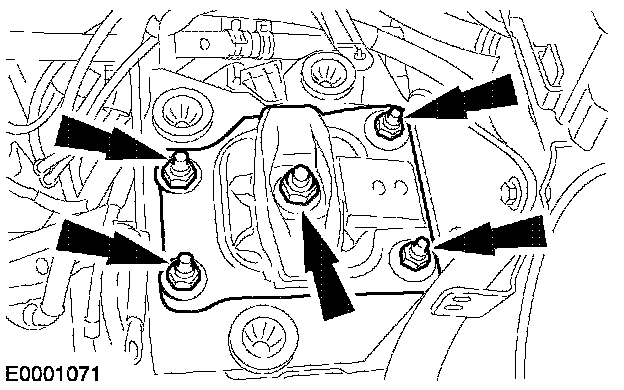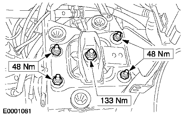 NOTE: Do not tighten the engine rear mount retaining nut at this stage.