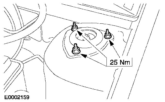 24. Tighten the strut and spring assembly upper mounting retaining nuts on both sides.