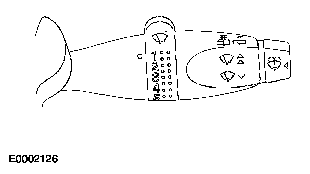 Push the wiper lever one step upwards. The windshield wiper motor performs single wiping movements at a slow speed with pauses between them. Depending on the model, the wiping time interval is either set at the fixed setting of 9 seconds or one of six steps can be selected by turning the knob at the end of the wiper lever (position 1 = short interval. Position 6 = long interval).