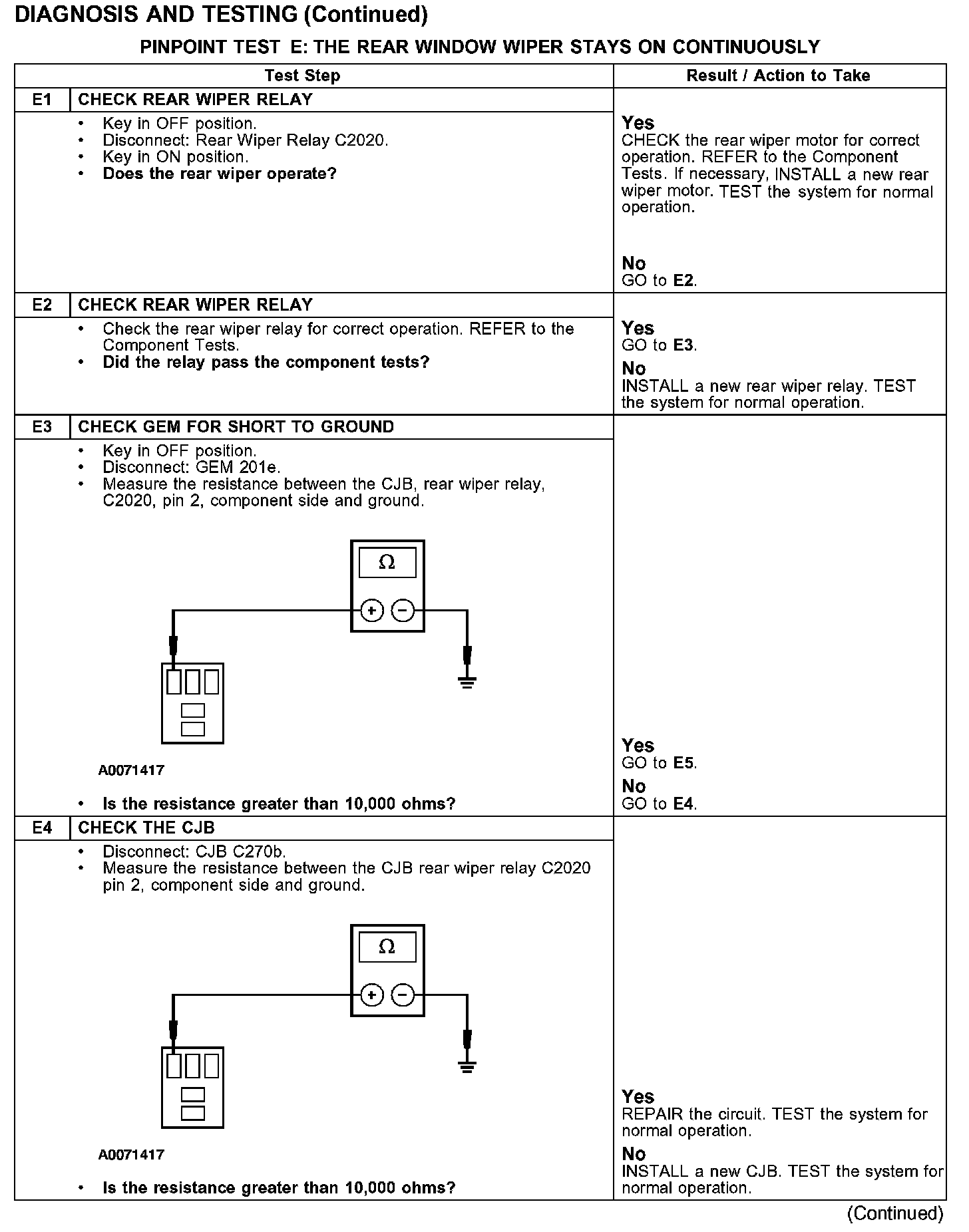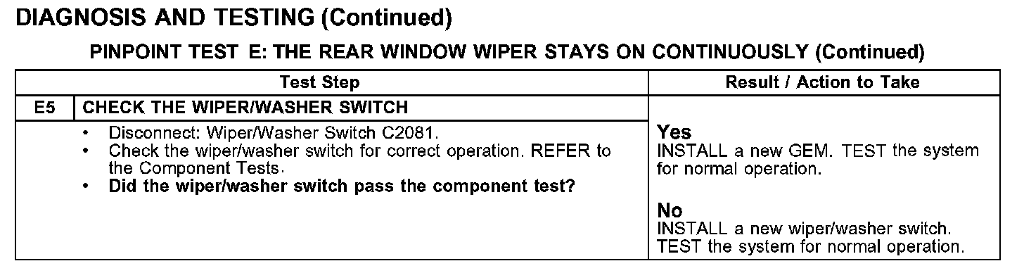 PINPOINT TEST E: THE REAR WINDOW WIPER STAYS ON CONTINUOUSLY