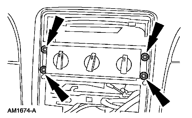 1. Remove the center instrument panel register. Refer to: Body and Frame, Interior Trim, Dashboard/Instrument Panel, Service and Repair, Center Finish Panel, Center Finish Panel