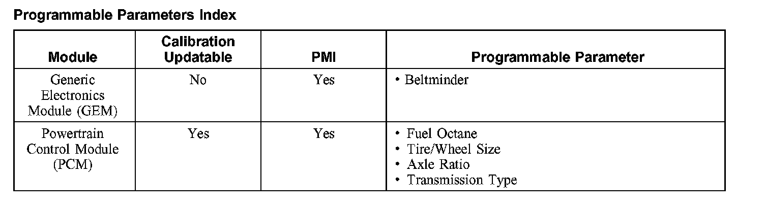 Programmable Parameters Index: