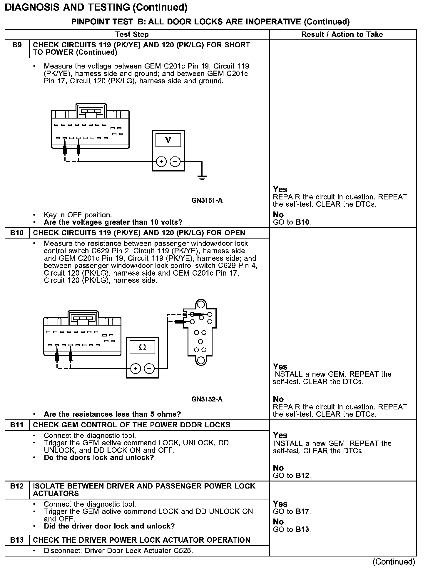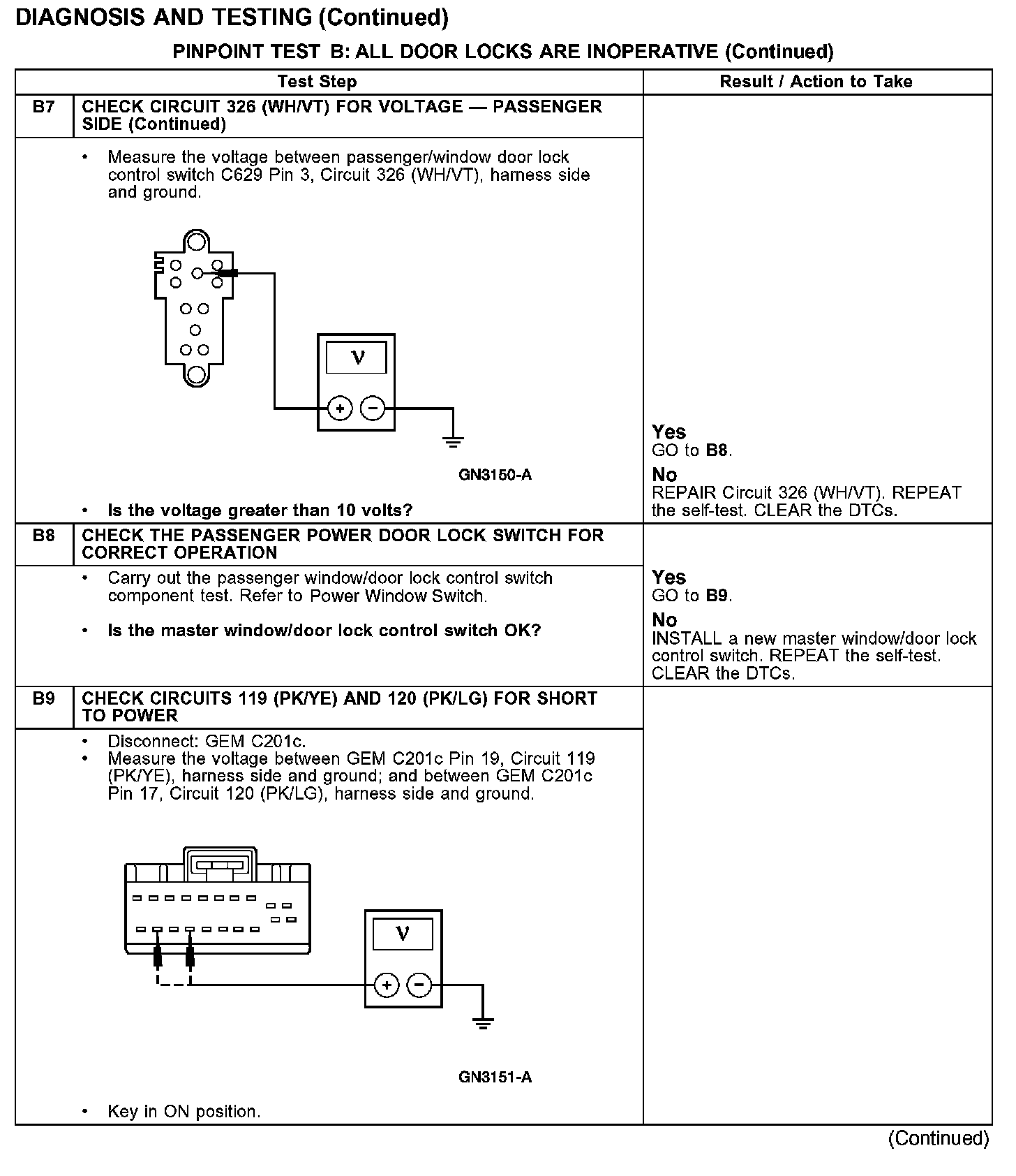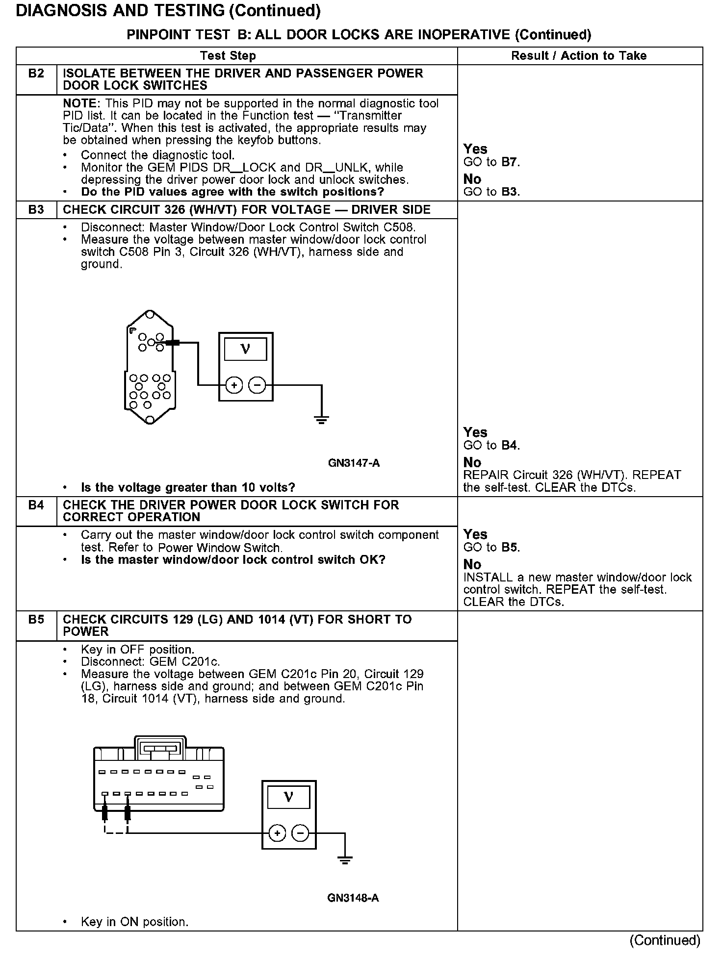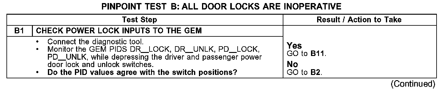 PINPOINT TEST B: ALL DOOR LOCKS ARE INOPERATIVE