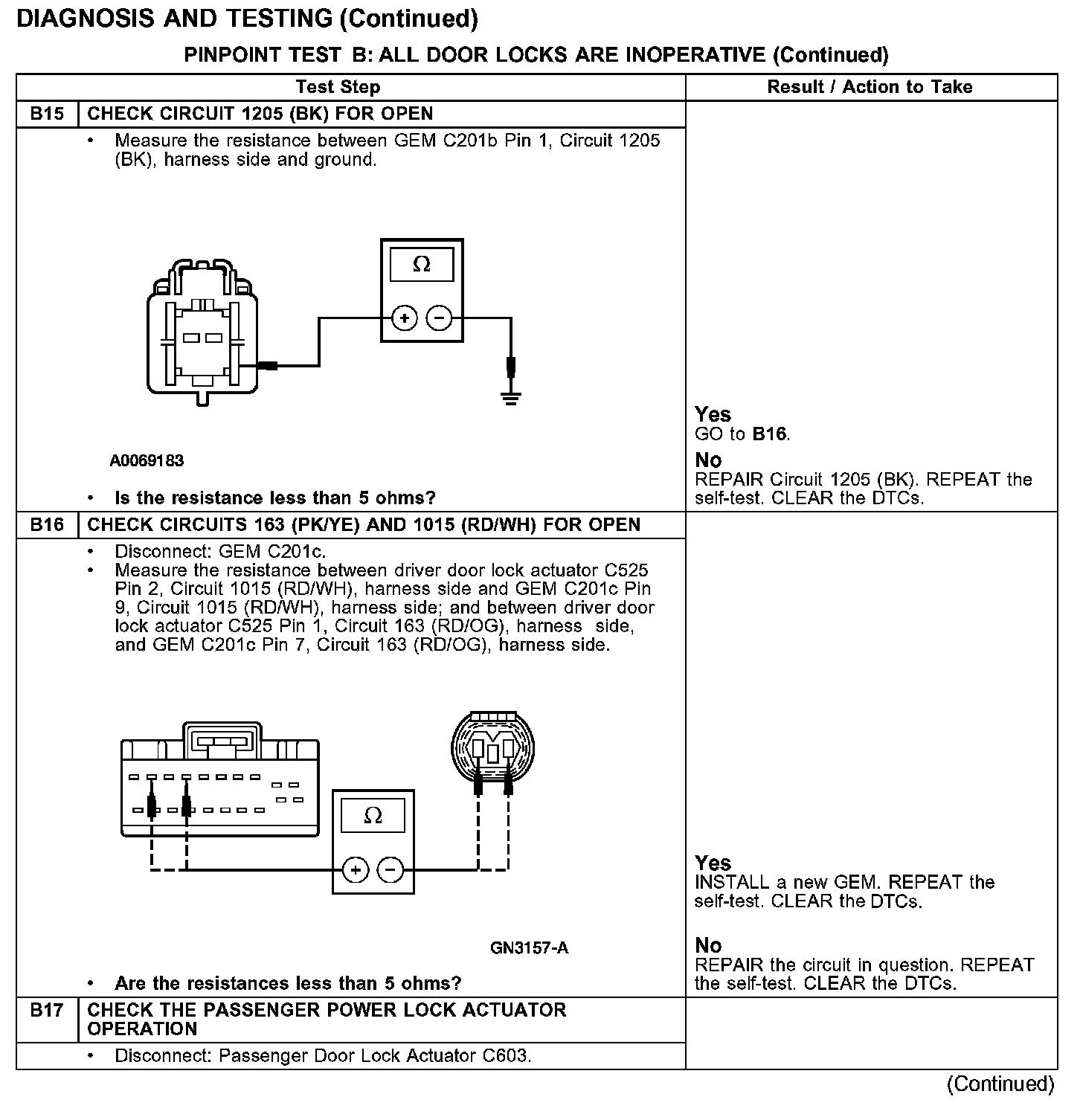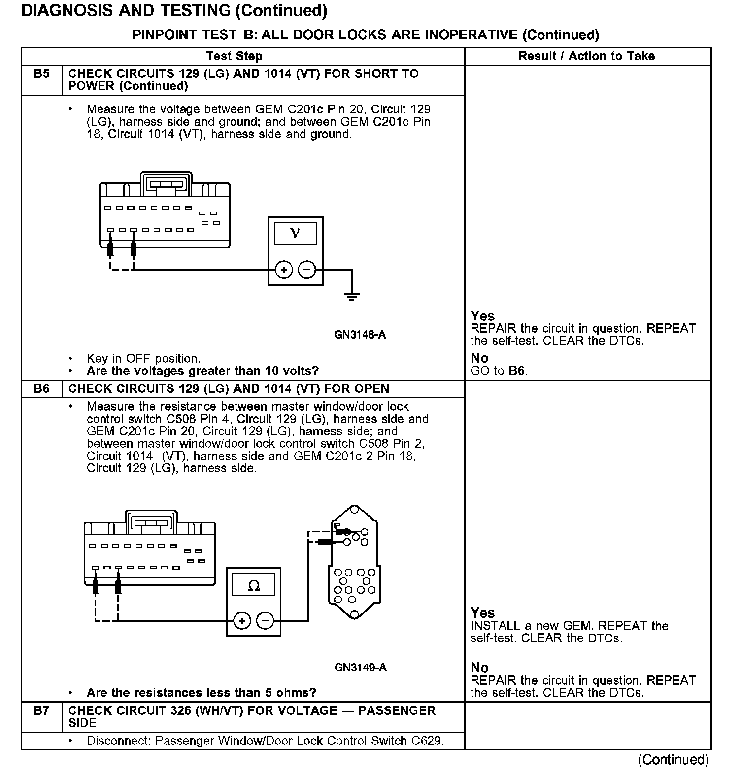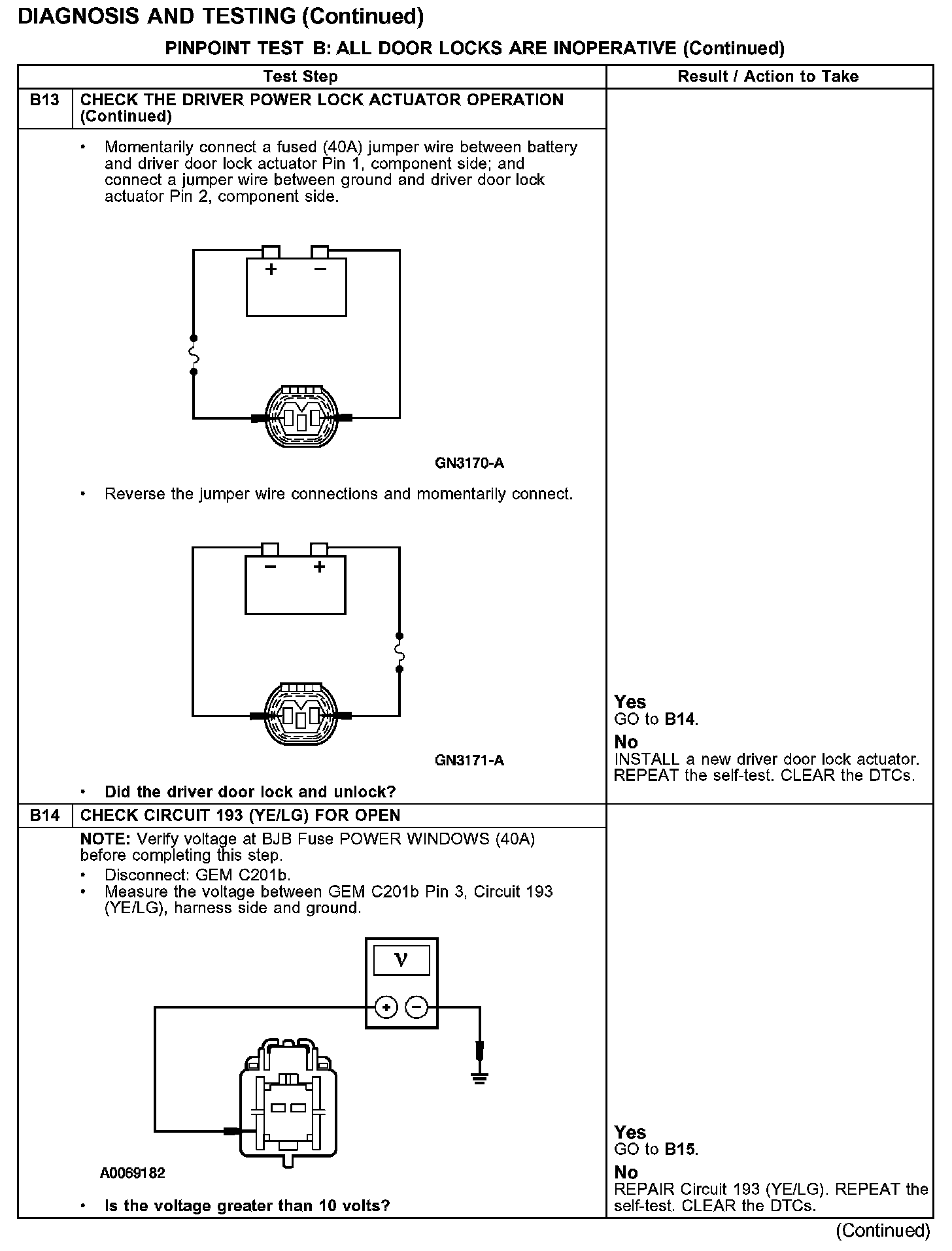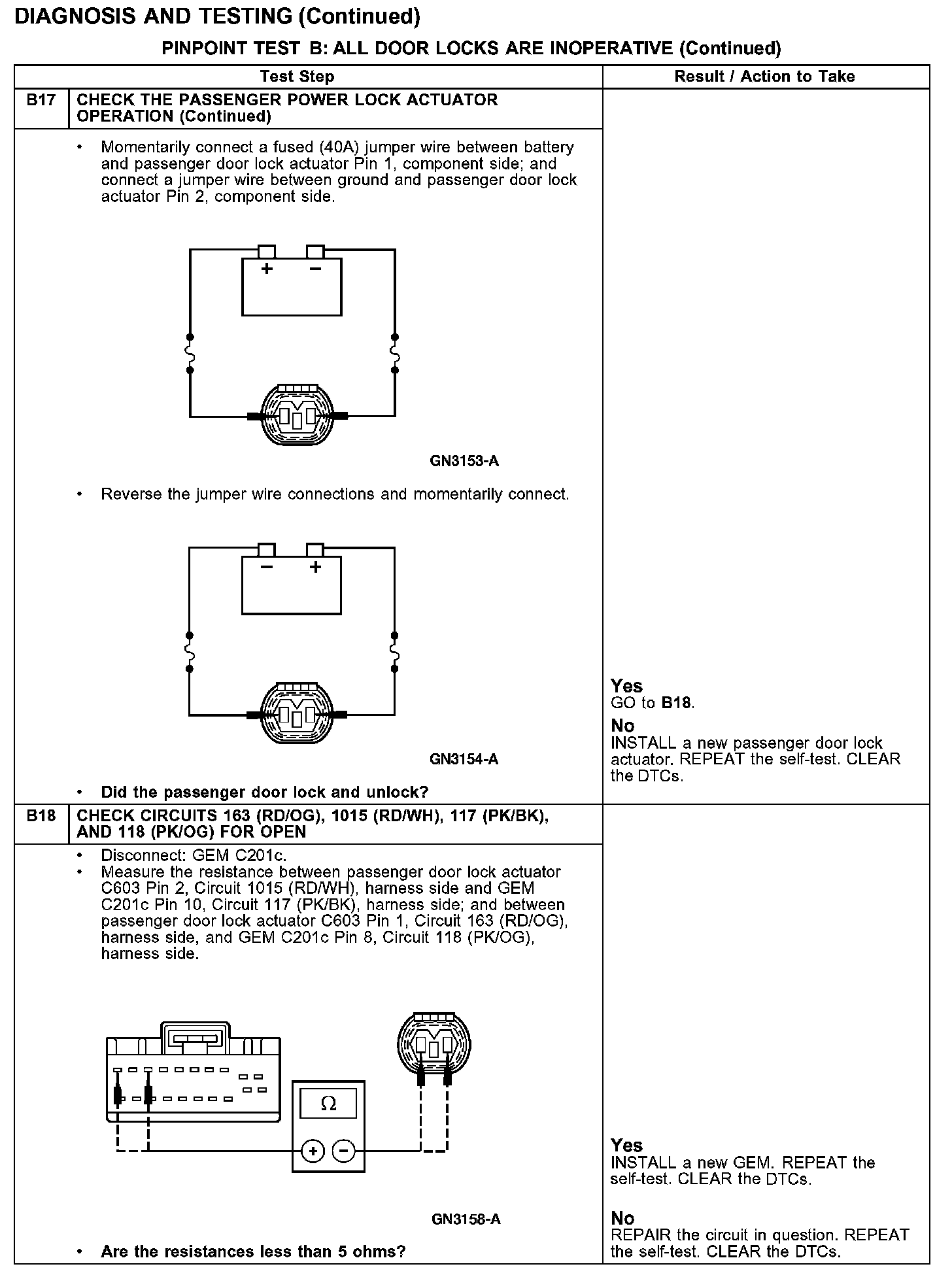 PINPOINT TEST B: ALL DOOR LOCKS ARE INOPERATIVE