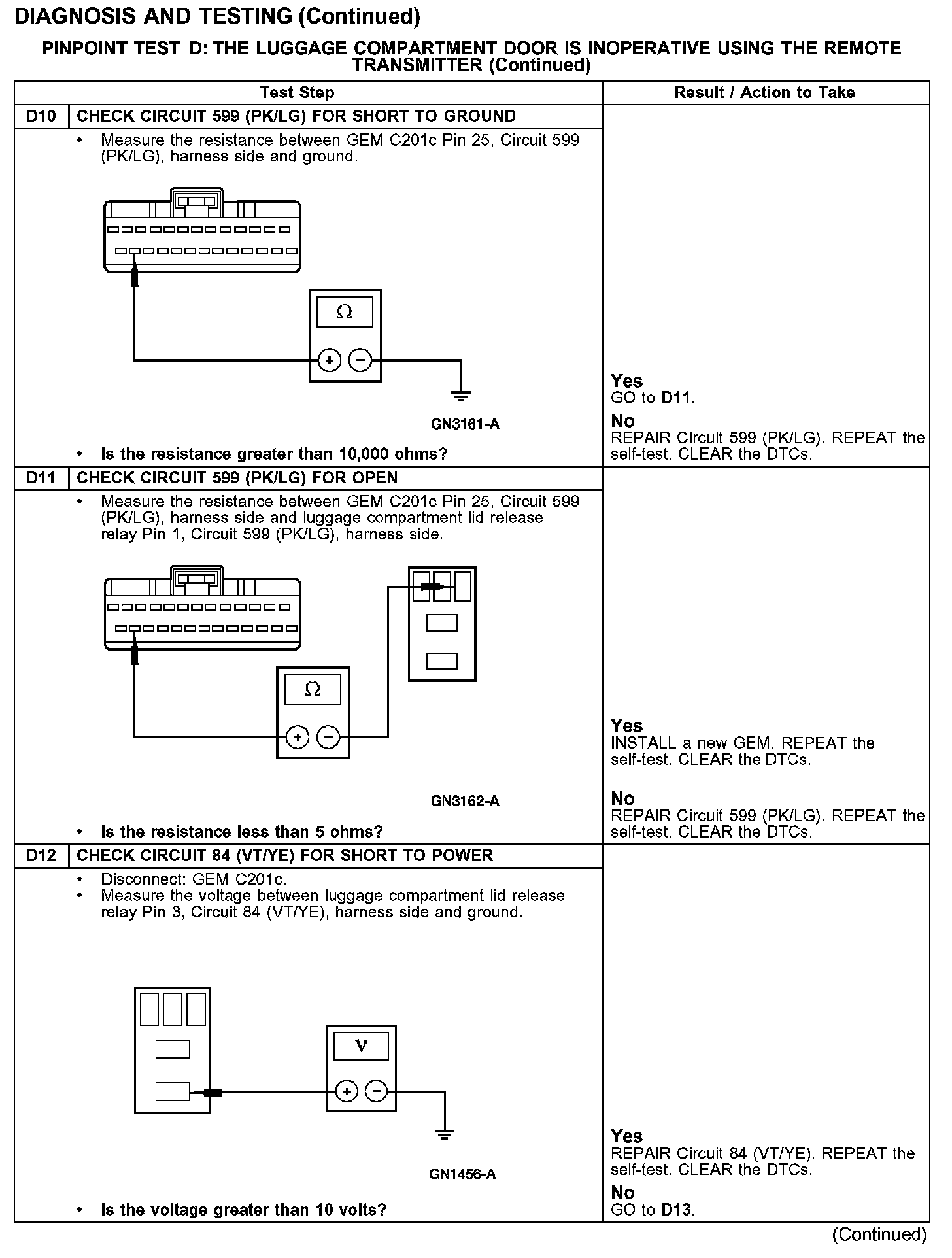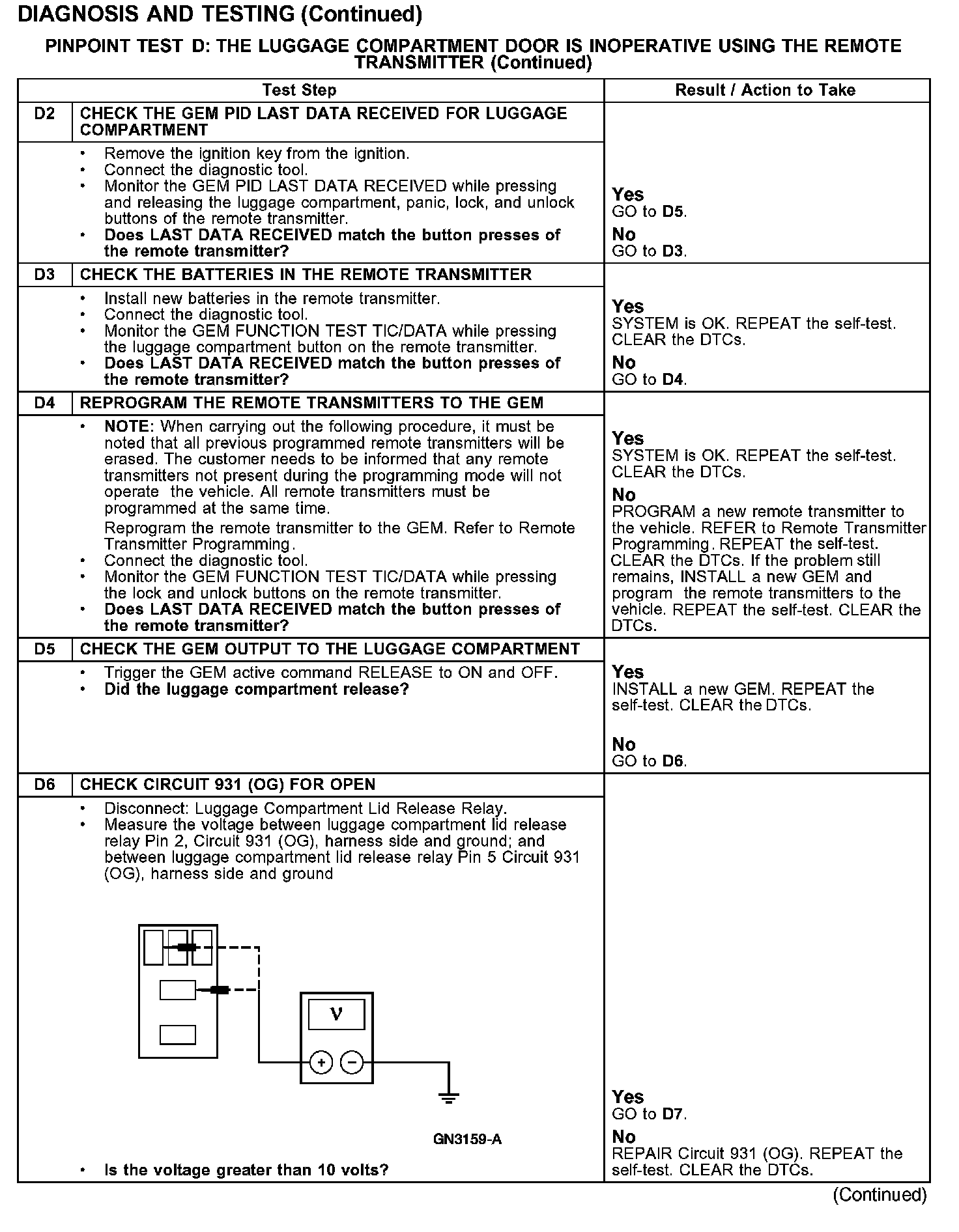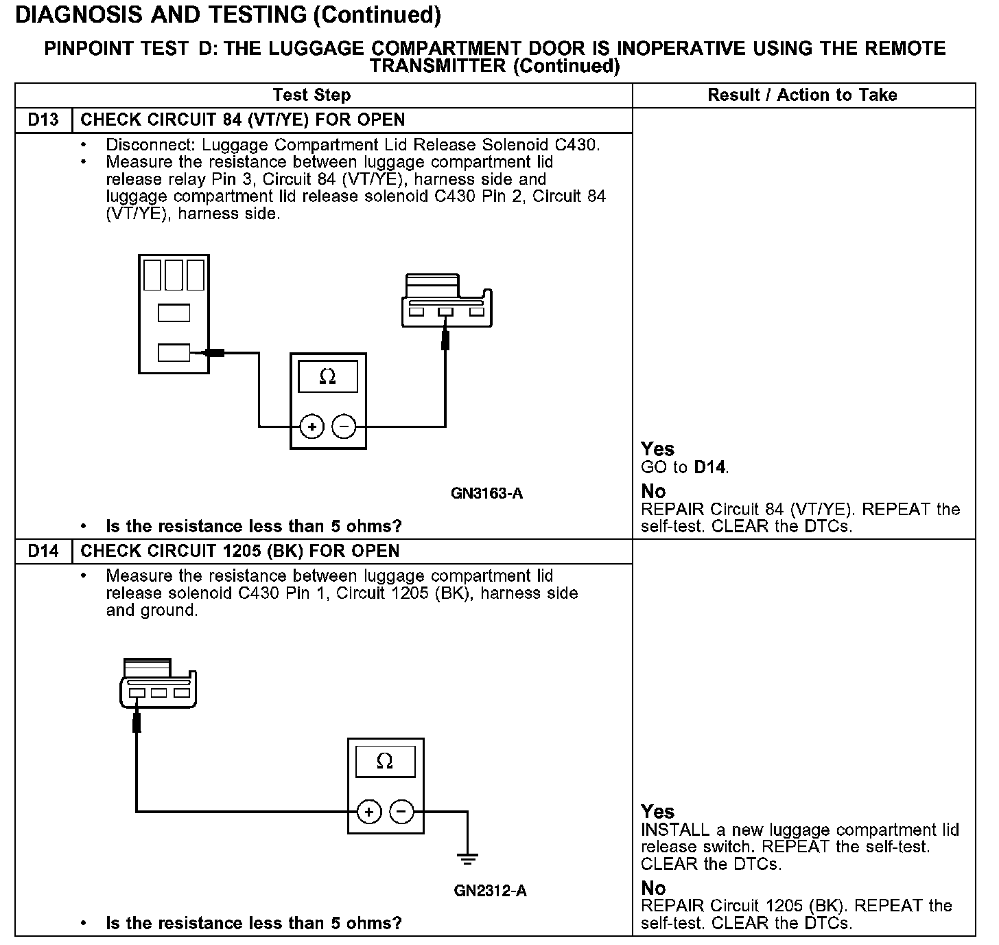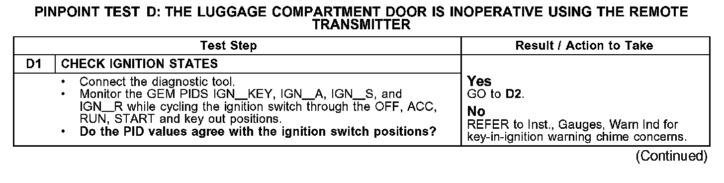 PINPOINT TEST D: THE LUGGAGE COMPARTMENT DOOR IS INOPERATIVE USING THE REMOTE TRANSMITTER
