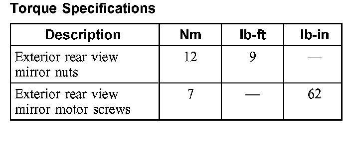 Torque Specifications: