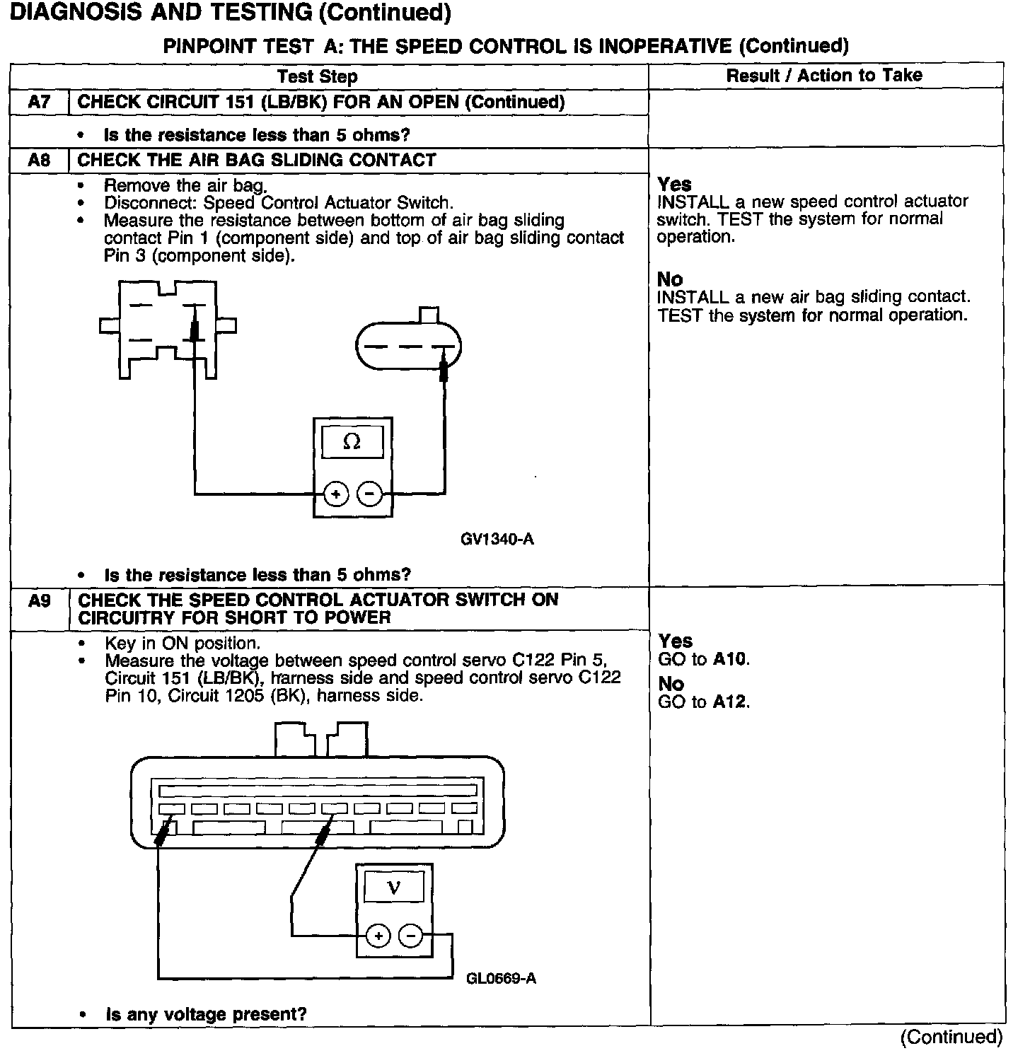 PINPOINT TEST A: THE SPEED CONTROL IS INOPERATIVE