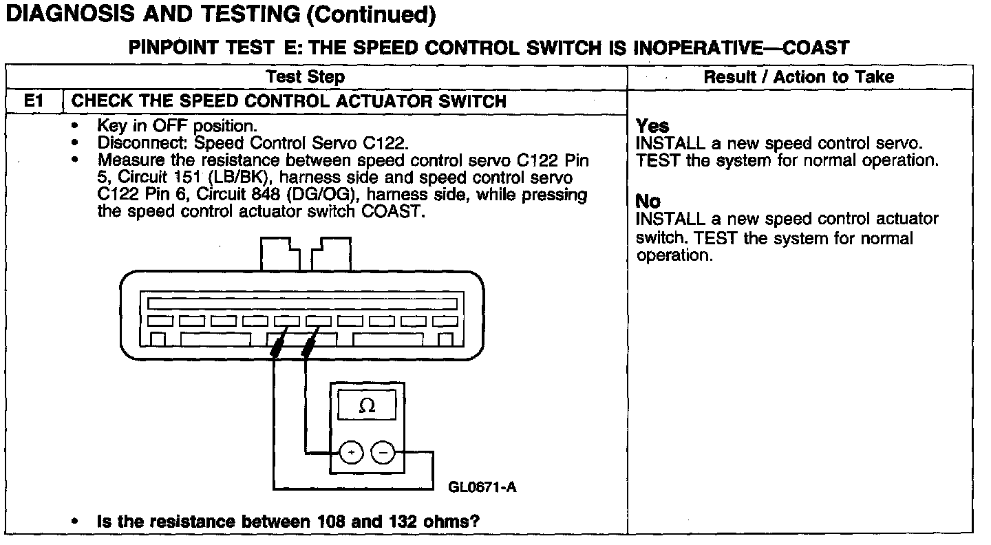 PINPOINT TEST E: THE SPEED CONTROL SWITCH IS INOPERATIVE - COAST