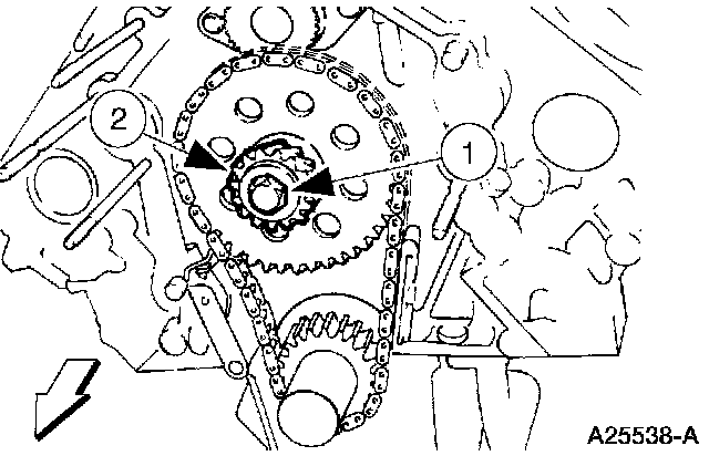 5. Install the timing chain, the camshaft sprocket and the crankshaft sprocket.