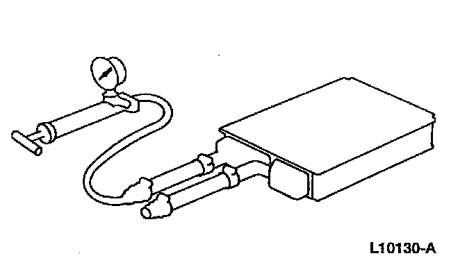 8. If the pressure drops, check the heater water hose connections to the core tubes for leaks. If the heater water hoses do not leak, remove the heater core from the vehicle and carry out the bench test.