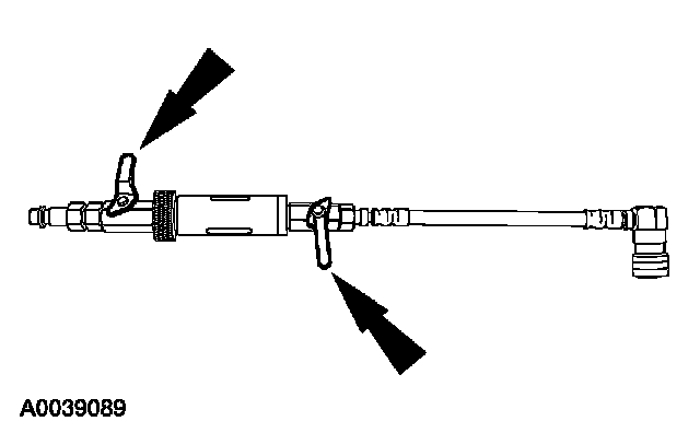 Disconnect the high-pressure and low-pressure service valves and remove the deluxe injector loop kit from the vehicle.