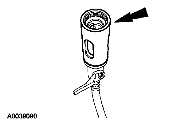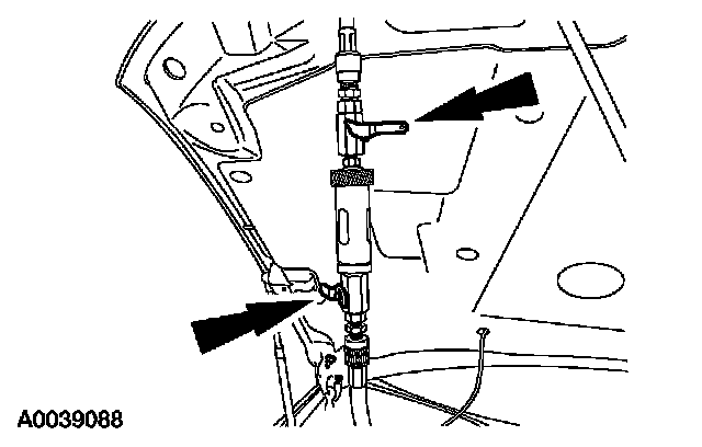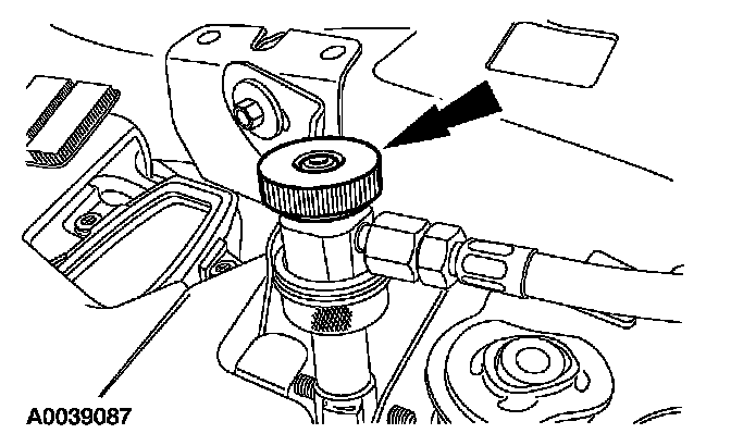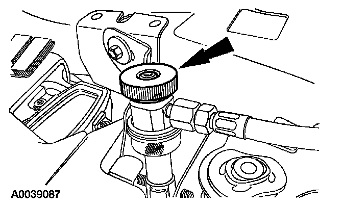 8. Remove the fluorescent dye injector from the low-pressure service gauge port valve and the R-134a A/C refrigerant service center or manifold gauge set.