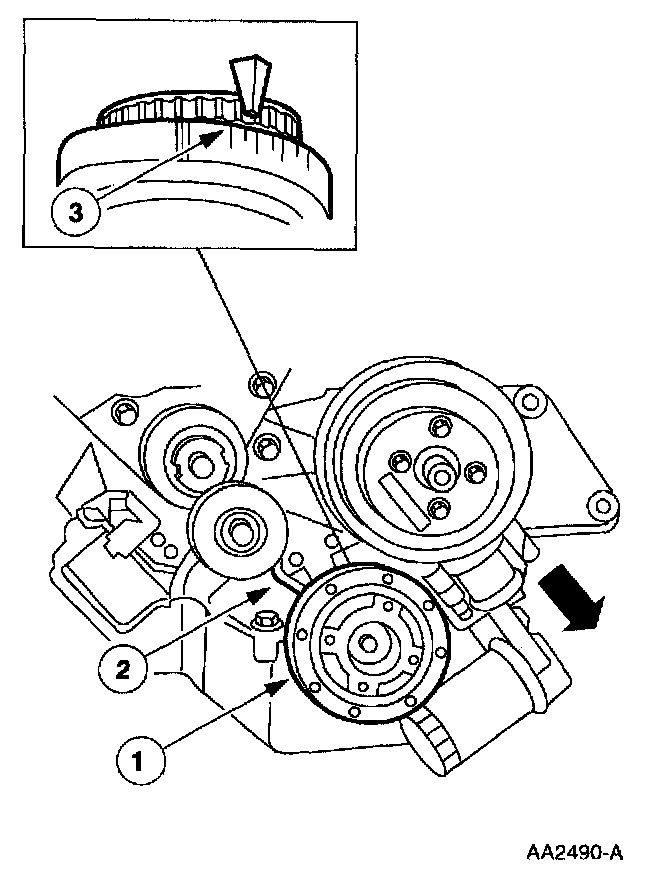 NOTE: Ford does not provide a TDC (Top Dead Center) mark or determination procedure for this engine in this vehicle.