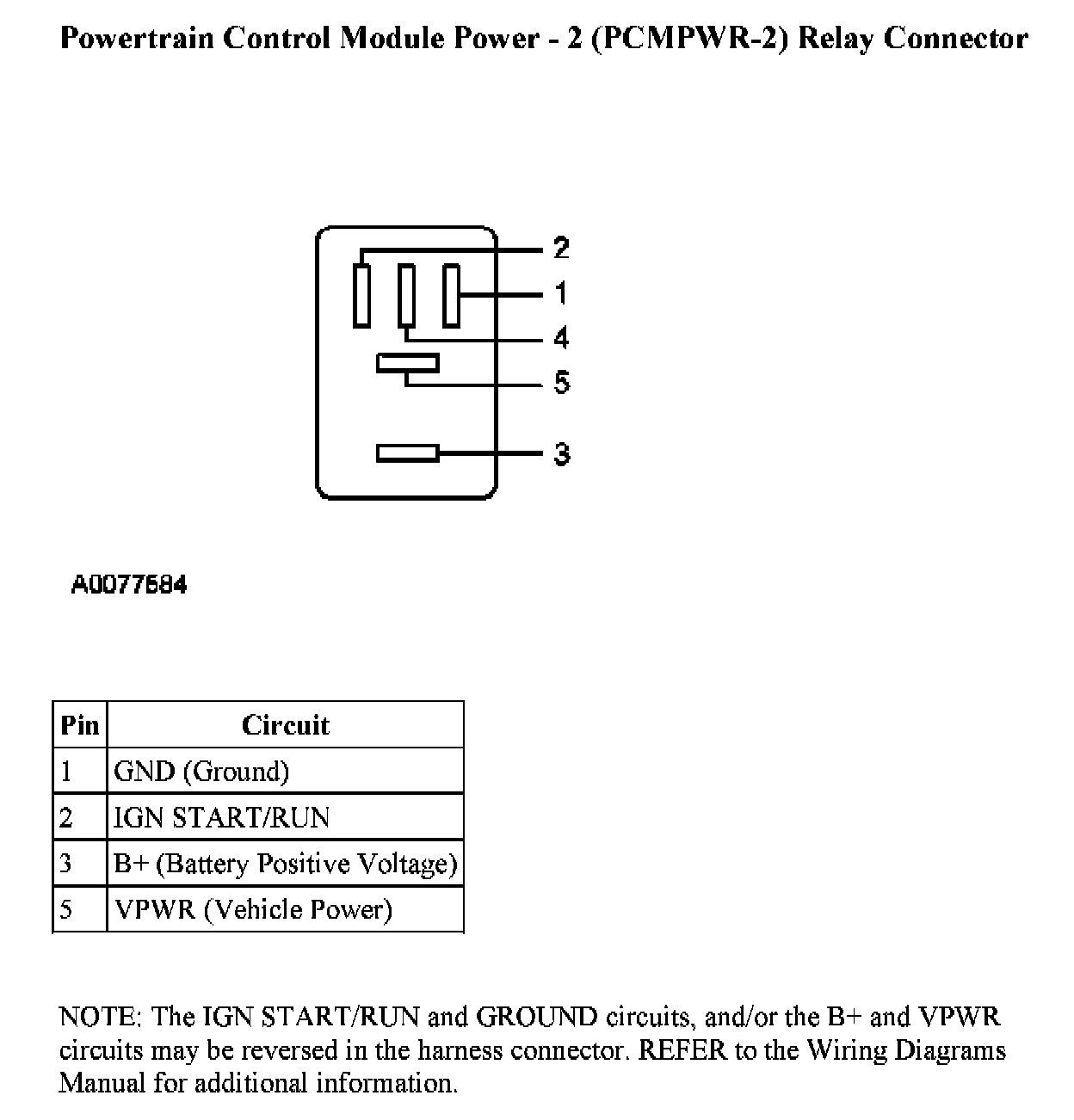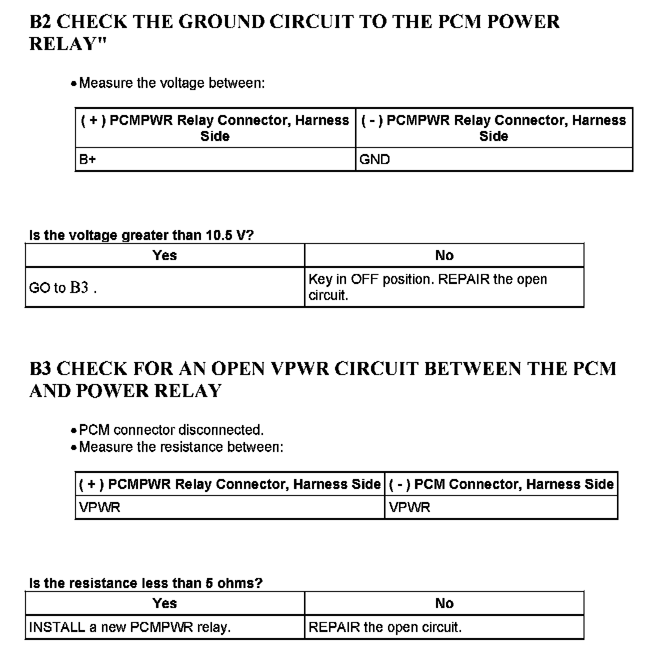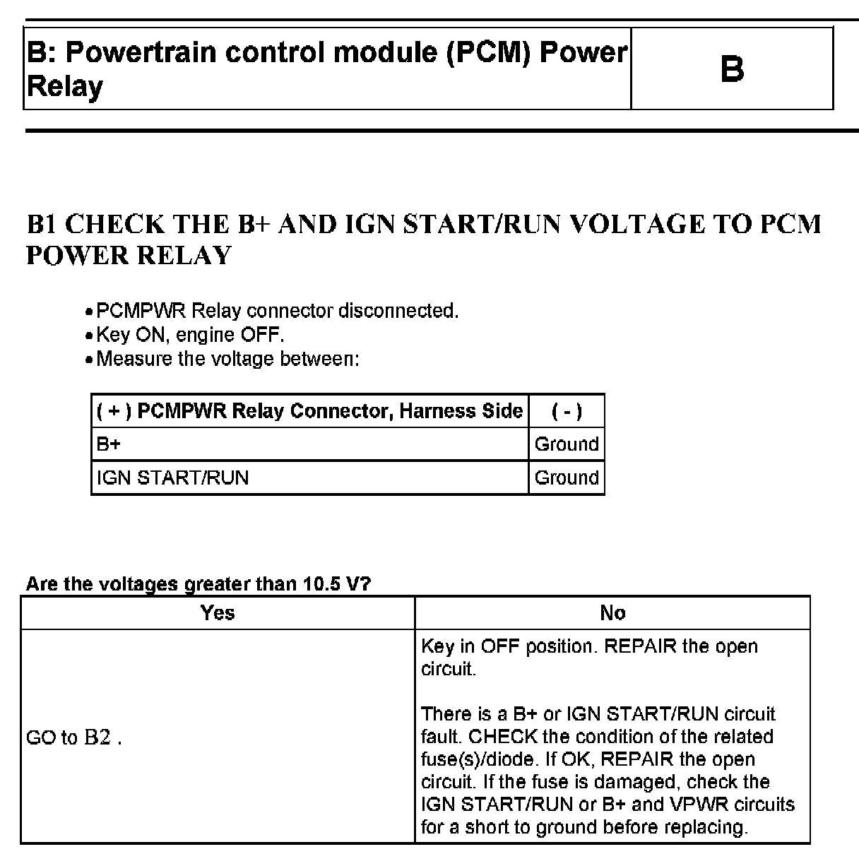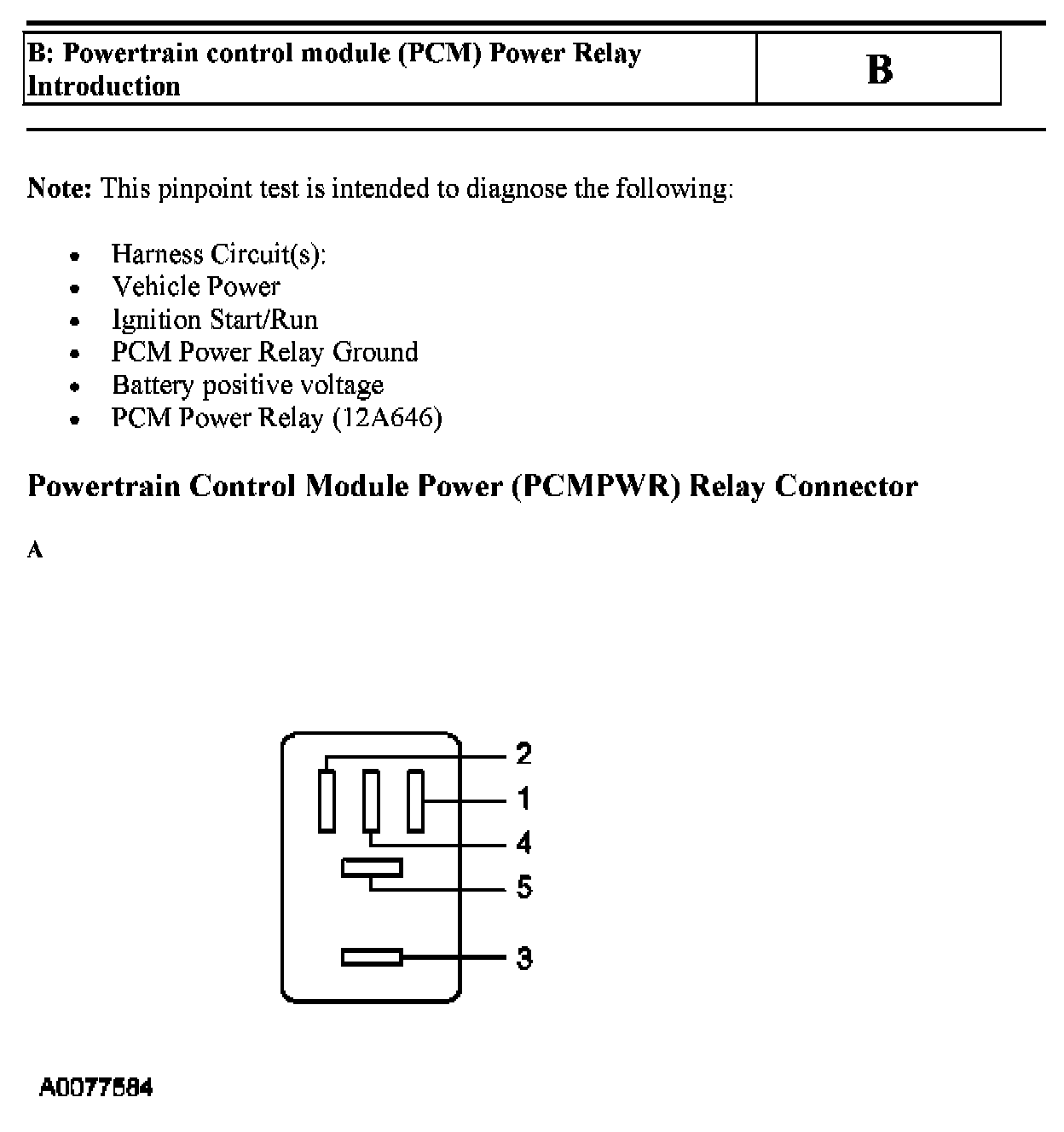 PINPOINT TEST B: POWERTRAIN CONTROL MODULE PCM POWER RELAY